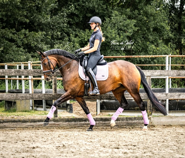 For sale: a wonderfully sweet mare with experience, quality, and a golden temperament We are pleased to offer this exceptionally gentle and affectionate mare for sale. A horse that stands out for her friendly nature, honesty, and versatility—both in sport and beyond. This mare has extensive competition experience. She is light and sensitive to ride, responds to very subtle aids, and is sharp without becoming hot or spooky. She gives her rider a wonderful feeling and remains consistently willing. Under saddle, she has an excellent walk, beautiful extended gaits, and easy changes. She performs flying changes effortlessly. In training, she already shows a correct and promising start of piaffe and passage. She also jumps a few small fences. In the arena, she always puts in her best effort and works with enthusiasm. She performs all exercises with great ease. In short, she is a very nice competition horse. She can be ridden both on snaffle and double bridle. Outside of dressage, she is also a very pleasant horse. She enjoys jumping, and in training, we occasionally do courses up to 1.00 m for variety. Additionally, she visibly enjoys forest and beach rides, which we do weekly, as well as relaxed walks in the woods on a lead. She is so trustworthy in handling that even a small child can walk safely with her. Incognito is very human-oriented, which strengthens the bond between horse and rider. She is very easy to handle: she is calm at the farrier, dentist, and during transport. Her temperament is calm, sensible, and free of panic. She always loves cuddles and scratches. She is in excellent health. In August 2024, she will undergo a full clinical and radiological examination, including neck and back, with no remarks. Incognito has no stable vices. We are looking for a very loving and suitable home where she will have all the opportunities in sport and receive proper attention. Please feel free to contact us by phone for more information or to arrange a meeting.