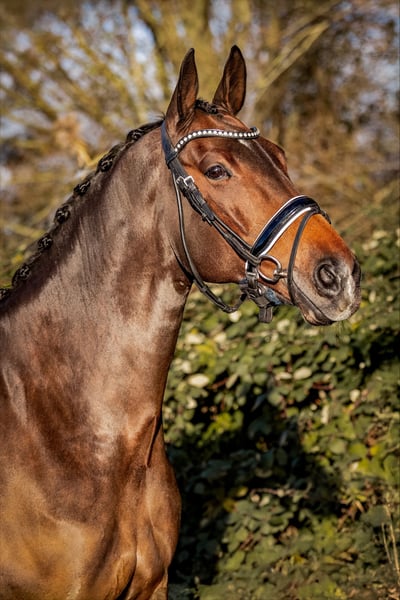 Zum Verkauf: äußerst liebenswerte, erfahrene und charakterstarke Stute mit hoher Qualität Wir bieten hier eine besonders liebe und anhängliche Stute zum Verkauf an. Ein Pferd, das durch sein angenehmes Wesen, seine Ehrlichkeit und seine vielseitigen Einsatzmöglichkeiten sowohl im Sport als auch außerhalb überzeugt. Diese Stute verfügt über umfangreiche Wettkampferfahrung. Sie ist leicht und fein zu reiten, reagiert auf sehr leichte Hilfen und ist scharf, ohne heiß oder schreckhaft zu werden. Sie vermittelt dem Reiter ein wunderbares Gefühl und bleibt stets aufmerksam. Unter dem Sattel besitzt sie eine ausgezeichnete Schrittqualität, schöne ausgedehnte Gänge und einfache Wechsel. Appuyements führt sie sehr mühelos aus. Im Training zeigt sie bereits einen korrekten und vielversprechenden Beginn von Piaffe und Passage. Zudem springt sie bereits einige Sprünge. Im Viereck gibt sie stets ihr Bestes und arbeitet mit Freude mit. Alle Übungen meistert sie mit großem Leichtigkeit. Kurz gesagt, ein sehr angenehmes Turnierpferd. Sie ist sowohl an Zügel, als auch an Kandare und Zügelzügel zu reiten. Auch außerhalb der Dressur ist sie ein äußerst angenehmes Pferd. Sie springt gern, und im Training absolvieren wir Parcours bis 1,00 m für Abwechslung. Außerdem genießt sie sichtbar Spaziergänge im Wald und am Strand, die wir wöchentlich unternehmen, sowie entspannte Spaziergänge an der Hand im Wald. Im Umgang ist sie so zuverlässig, dass selbst ein kleines Kind sicher mit ihr spazieren gehen kann. Incognito ist sehr menschenbezogen, was die Bindung zu ihr zusätzlich stärkt. Sie ist im Umgang äußerst unkompliziert: brav beim Hufschmied, beim Tierarzt und beim Transport. Ihr Charakter ist ruhig, gelassen und panikfrei. Sie freut sich immer über Streicheleinheiten und Kribbeln. Sie ist topgesund. Im August 2024 wird sie klinisch und röntgenologisch vollständig untersucht, inklusive Hals und Rücken, ohne Befunde. Incognito hat keine Haltungsfehler. Wir suchen ein liebevolles und passendes Zuhause, in dem sie alle sportlichen Chancen erhält und die nötige Aufmerksamkeit bekommt. Für weitere Informationen oder ein Kennenlernen rufen Sie uns gern telefonisch an.