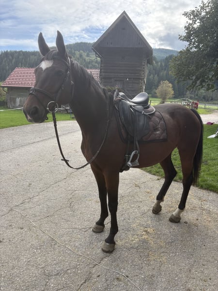 Urocza 14-letnia klacz Oldenburska Mała, jak nazywamy ją u nas, ma 165 cm wzrostu. Dobrze jeźdzona w ringach i na terenach, wykazuje się przy tym świetnym zachowaniem i jest bardzo posłuszna oraz łatwa w obsłudze. Będzie również idealnym partnerem na długie przejażdżki lub wyprawy piesze, a także świetnie nadaje się dla mniej doświadczonych jeźdźców. Idealna również do hodowli, miała już źrebięta i była regionalną klaczą czempionką. W kontaktach w 100% grzeczna. Bez problemów z podkuwaniem i załadunkiem, zdrowa. Lokalizacja: 8843 Sankt Peter am Kammersberg