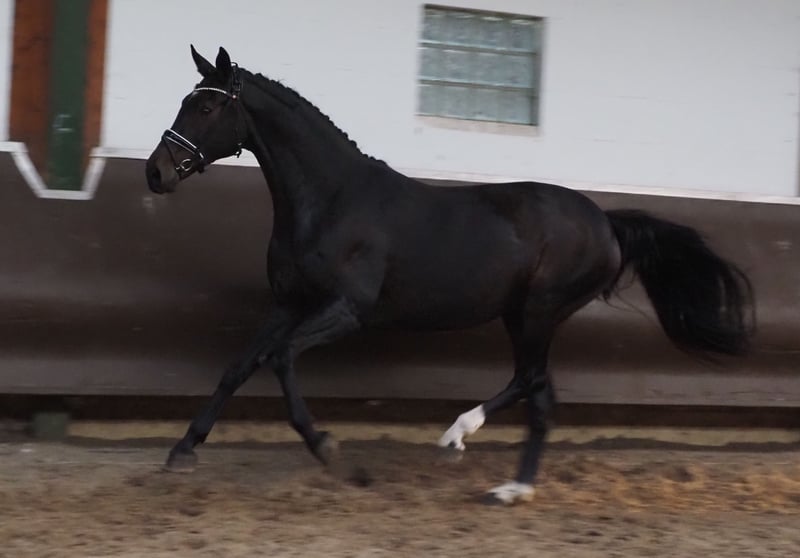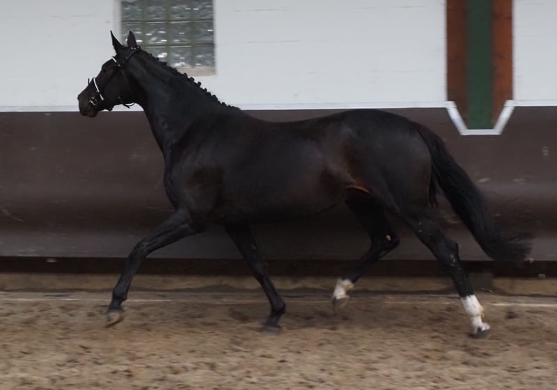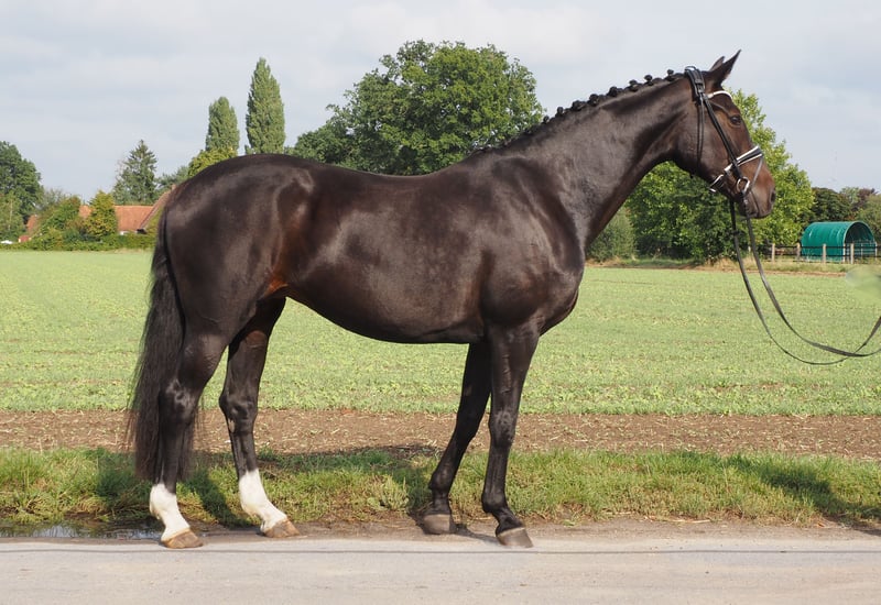 Großrahmige imposante Don Schufro Tochter! Vollschwester zu dem dänischen Siegerhengst und HLP Sieger "Blue Hors Doolittle"! Eine weitere Vollschwester war als Jungpferd bis M** hoch erfolgreich, bevor sie in die Zucht wechselte. Sie entspringt über Dynamo und Pik Bube einem Hannoveraner Stutenstamm, der die Vererber Pik Senior, Demonstrator, Don Diego und High Spirits hervorgebracht hat. Hatte bereits ein überzeugendes bewegungsstarkes Rapphengstfohlen und ist jetzt wieder tragend für März 2026 vom Siegerhengst, HLP Sieger und BUCha Finalist "Cafe au lait"! Cafe au lait macht schon seit einigen Jahren durch seine unheimlich erfolgreiche Nachzucht im Dressur- und Springsport der schweren Klasse auf sich aufmerksam! Er selbst war unter Philipp Weishaupt Bundeschampionatsfinalist und ist bis S*** Springen erfolgreich gewesen, ist aber auch mit drei spektakulären GGA ausgestattet und dressurmäßig auf S Niveau ausgebildet worden. Stationiert bei Paul Schockemöhle zeugte er schon etliche international erfolgreiche Springpferde, u.a. "Royce", siegreich im FEI CSI5* $500,000 Rolex Grand Prix Wellington. Der aus unserer Zucht stammende gekörte Cafe's Champus wurde unter Rene Tebbel Vizeweltmeister der jungen Pferde. Ebenfalls alle gekört und aus unserer Zucht: Cafe Junior (Cafe au lait x Silvio I), international S*-Springen platziert. Cafe's Columbo (Cafe au lait x Belstaff), erfolgreich in Frankreich. Cafe`s Star (Cafe au lait x Calido I): gekört und S-Springen erfolgreich im Iran. Cafe's Don Rubin: gekört, 4jährig als jüngstes Pferd Bronze beim Dobrocker Deisterchampionat, mehrfach siegreich Springpferde L , M platziert und qualifiziert zum BuCha. Cafe`s Deconi: gekört, grade 3jährig 50 Tage Leistungsprüfung mit Noten bis 9,0 abgelegt! Weitere Jungpferde aus springbetonten Mutterstuten sind bereits mehrfach in Dressurpferdeprüfungen A bis M platziert und sind bemerkenswert bewegungsstark und kopfklar. Auch im großen Viereck überzeugen die "Cafe's" auf ganzer Linie: So wurde Cafe's Casimir" (Cafe au lait x Calido x Grannus) gefeierte Preisspitze der Oldenburger Eliteauktion, war bereits in jungen Jahren Seriensieger in Dressurpferde M, 7jährig in seinen ersten S- Dressuren wieder Seriensieger! Mittlerweile ist er in international Intermediaire I siegreich. Stute Kasselmanns Cafe's Caletta (Cafe au lait x Calato) ist ebenfalls bereits S-Dressur und grade international Grand Prix siegreich. Cafe's Matts (Cafe au lait x Don Frederico) wurde zweitteuerstes Dressurpferd der Oldenburger Summer Mixed Sales. Alle Nachkommen zeichen sich durch hohe Rittigkeitswerte, Traumcharakter und Doppelveranlagung aus! Unsere Fohlen bekommen täglich Mineralfutter und Fohlenstarter, regelmäßig EQUISTRO Haemolytan und Ipaligo Foal, Wurmkuren und Schmied sind natürlich ebenfalls selbstverständlich. Auch die Muttertiere bekommen die ganze Trächtigkeit hindurch spezielles Stutenfutter, Saftfutter, Leinöl, sowie Heu ad libitum. So sind unsere Zuchtstuten und ihre Nachzucht stets im besten Gesundheitszustand! Bei passendem Pedigree auch Inzahlungnahme von Zuchtstuten möglich. Es stehen auch immer wieder einige weitere tragende Zuchtstuten und Fohlen zum Verkauf, ein Teil ist unter den anderen Anzeigen zu finden. Bei uns fallen jährlich um die 20 Cafe au lait Fohlen. Besichtigung ist täglich möglich. Videoanfragen etc. ausschließlich via WhatsApp möglich.
