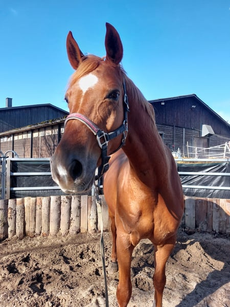Sie kennt Boxenhaltung, fühlt sich jedoch im Offen/Laufstall wohler, läuft barhuf.