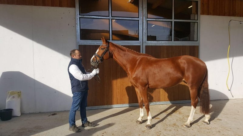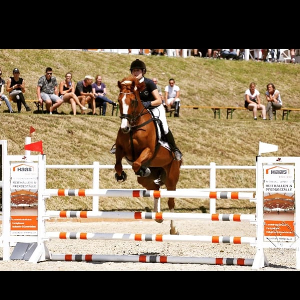 Loving home sought for experienced Oldenburg mare For personal reasons, I am reluctantly looking for a new, caring home for my 18-year-old Oldenburg mare, Chicca. Chicca is an exceptionally patient and people-oriented mare with a friendly, balanced temperament. She has an excellent jumping pedigree – her sire is EPSOM GESMERAY, and on her dam's side, she comes from the proven line of the legendary Almé Z. Due to a sinking of the coffin bone, Chicca has not been in active sports for several years. She is wonderfully suited as a companion horse or for breeding (1-2 foals) – her pedigree provides the best prerequisites for this. Chicca is familiar with both open stable and box housing, is well-mannered, easy to shoe and load, and enjoys every bit of loving attention. I wish for her a home where she will be loved and can enjoy her retirement in peace.