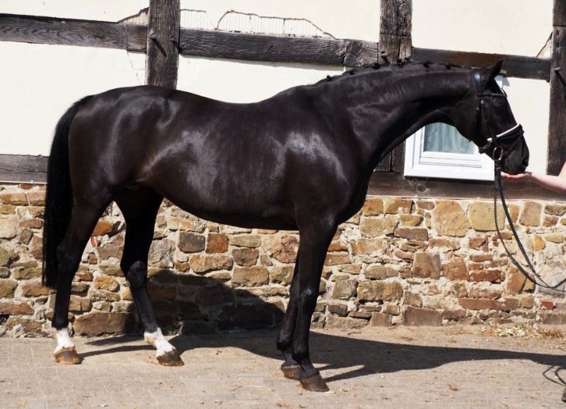 Avelsjuvel med bästa stamtavla, med övertygande fillies till fots (se andra annonser) och gravid igen för 2024 av championhingsten Cafe au lait! En annan helsyster av denna parning har redan sålts, helbror (hingstkandidat) kan fortfarande besökas på plats. Helbror till detta avelssto var framgångsrik i dressyr upp till S**! Även vid parning med Haflinger producerade den otroligt starka avkommor (se bilder). Fader "De Kooning" har redan levererat Grand Prix-hästar som Dalou Shan trots ganska begränsad stuterianvändning och har, som direkt son till den unika Donnerhallen, mycket holsteinblod på damsidan. Trots det lilla antalet avkommor har han redan producerat flera licensierade avkommor, inklusive en premiumhingst i Neustadt Dosse, dressyrvinnaren i München-Riem och en annan premiumhingst! "Cafe au lait", licensvinnare, HLP-vinnare och BuCha-finalist, har gjort sig ett namn de senaste åren genom sina extremt framgångsrika avkommor i både dressyr och hoppning i den tunga klassen. Så blev Café's Casimir" (Cafe au lait x Calido x Grannus) den hyllade förstavinsten på Oldenburg Elite Auction, är redan serievinnare i S-dressyr och internationell Intermediaire I segrade i ung ålder. Mare Kasselmann's Cafe's Caletta (Cafe au lait x Calato) har också redan placerat S-dressyr och vunnit International Grand Prix. Café's Mats (Cafe au lait x Don Frederico) blev den näst dyraste dressyrhästen i Oldenburg Summer Mixed Sales. Andra unghästar från hoppande moderston har redan placerat sig flera gånger i dressyrhästprov A och L och är anmärkningsvärt starka i rörelse och klara som huvud. Det råder ingen tvekan om att café au lait-avkommorna är övertygande i hoppning upp till avancerad klass (t.ex. från vår uppfödning Cafe's Champus: licensierad, vice världsmästare i unghästar, Cafe Junior: licensierad, internationellt framgångsrik i Saudiarabien). Med Paul Schockemöhle har Cafe au lait redan producerat flera internationellt framgångsrika hoppryttare, inklusive "Royce", vinnare av FEI CSI5* $500,000 Rolex Grand Prix Wellington. Cafe au lait själv var finalist i SM under Philipp Weishaupt och har varit framgångsrik fram till S*** hoppning, men har även utrustats med tre spektakulära GGA och tränats dressyr på S-nivå. Cafe au lait är homozygot mörkt, så ingen räv kan falla. Våra föl får dagligen mineralfoder och fölstarter, vanliga EQUISTRO Haemolytan och Ipaligo Föl, avmaskning och smide är naturligtvis också en självklarhet. Mammorna får också speciellt stofoder under hela graviditeten, dagligt juicefoder och linolja samt hö ad libitum. Så våra avkommor är alltid i bästa hälsotillstånd! Det finns också några dräktiga avelsston till salu, varav några finns under de andra annonserna. Om stamtavlan är lämplig är inbyte av avelsston möjligt.
