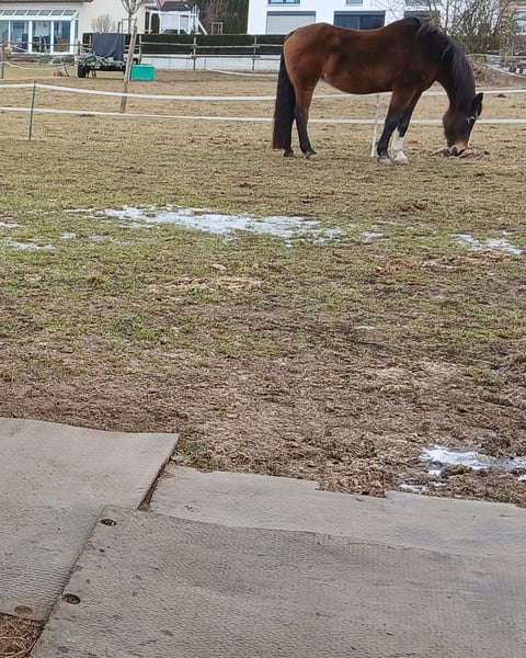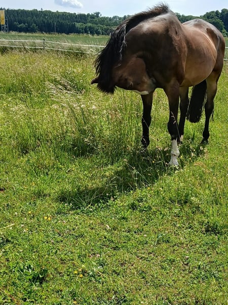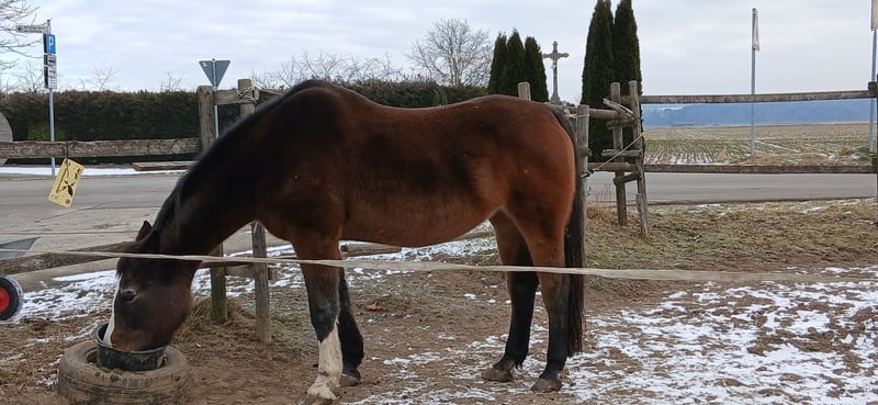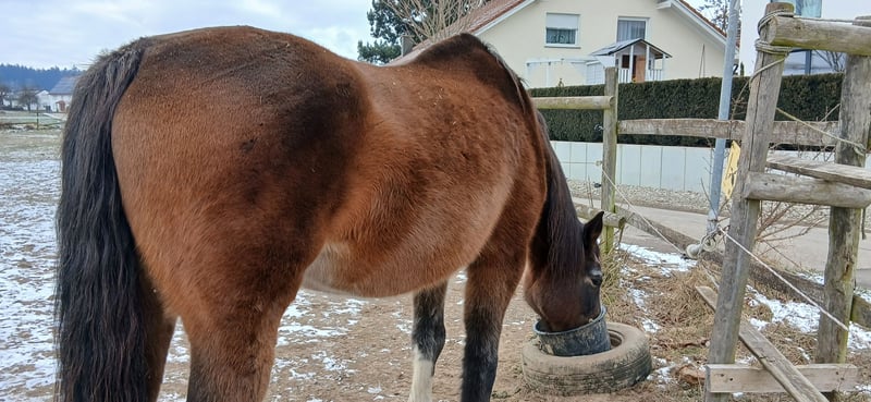Aus gesundheitlichen und finanziellen Gründen, suche ich für meine Stute ein liebes volles Zuhause mit einem Pferde erfahrenen Menschen. Costa Rica ist eine 19 jährige Oldenburger Stute. Sie ist seit einem Jahr als Beisteller bei mir. Sie wurde im Springsport und Dressursport eingesetzt. Costa Rica ist sehr menschenbezogen. Nach dem sie vertrauen gewonnen hat, folgt sie ihrem Herzensmensch auf Schritt und Tritt. Sie ist dennoch kein Anfängerpferd. Sie durfte bereits bei der Erstbesitzerin seit 5 Jahren in Ruhestand gehen. Da sie Veränderungen in den Gleichbeinen vorne beidseitig, und ein Splitterbruch Knie hinten links hatte. Costa Rica hat dadurch keine Einschränkungen. (Befunde liegen vor). Sie hatte zweimal Osteopathie, keine Auffälligkeiten. Costa Rica ist nicht rein ein Beistellpferd. Sie ist für Ihre 19 Jahre jung, sehr fit und agil. Ich habe mit Ihr Horshipman, Bodenarbeit gemacht. Sie kann nach der Eingewöhnungsphase gerne auch als Handpferd zu Ausritten mitgenommen werden, sowie Spazieren gehen. Sie braucht Ihr angemessene Auslastung. Sind die Muskeln entsprechend aufgebaut, könnte Sie auch wieder geritten werden. Costa Rica ist: - bedingt reitbar - rangniedrig - schmiedefromm - verladefromm - sehr menschenbezogen - kennt Hunde, Traktoren etc. - aktuell geimpft - regelmäßige Zahnkontrolle - regelmäßiger Hufschmied Costa Rica kennt Offenstallhaltung in einer kleinen gemischten Herde, was ich mir für Sie wünsche. Mit großen Wiesen und 24/7 Heu. Ist aber nicht zwingend. Transportmöglichkeit sollte vorhanden sein. Keine Züchter und Händler. Platz vor Preis. zuzgl. Futter und Behälter.