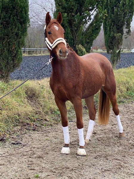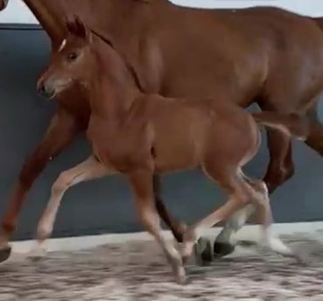 Vivina ist eine nun 2 1/2 jährige Dunkelfuchsstute, die nicht nur durch ihre schwungvollen und elastischen Bewegungen besticht, sondern auch durch ihr zutrauliches und unerschrockenes Wesen. Als Oldenburger Elitefohlen ausgezeichnet kam sie zur Aufzucht in die Herde. Nun ist sie wieder zurück und mit allem vertraut, was altersgemäß ist. Dabei ist sie sehr unkompliziert. Vivina hat aktuell ein Stockmaß von ca. 159 cm. Mit der Abstammung von Vivaldos aus einer Fürst Romancier x Kondor XX- Mutter weist sie auch ein tolles Pedigree vor. Interessant als gehobenes Nachwuchspferd für den ambitionierten Reiter. Aktueller TÜV liegt vor, ohne Befund.
