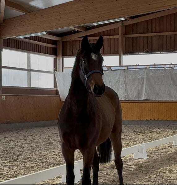 Cavalla mare Oldenburg di 3 anni, discendente da: DON DELUXE x DA COSTA x WOLKENSTEIN II Viene direttamente dal paddock ed è cresciuta nel branco. Caratterialmente molto semplice e estremamente educata. Un ottimo cavallo da amatore da iniziare a educare da sé. • Altezza attuale 1,61 m (circa 16.1 hh) • Nata a febbraio 2023 • Gestibile con il cavallo con il capo • Molto compatibile con gli altri cavalli • Conosce il box, il paddock e il pascolo 24/7, nonché il box all'aperto Viene affidata solo a mani amorevoli.