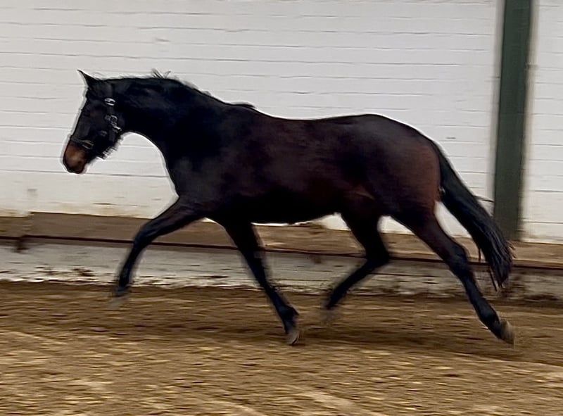 Extremely typy and beautiful For Kingdom-Quaterback - Donnerhall mare for sale. Both her mother and grandmother have been ridden themselves and are manageable for amateurs. The sire, For Kingdom, was the winner of the 2022 and 2023 sport tests in Verden with outstanding scores (9.05!), including top marks for rideability (9.8), and has already been placed in S-level competitions in 2025. For Kingdom's dam, Woodlander Dornröschen (successful at Grand Prix), is also the dam of the double world champion Woodlander Farouche. The sire of For Kingdom, For Emotion, was ranked number 1 among stallions based on breeding values at the 2025 young horse performance tests. The success of Quaterback, Donnerhall, and their progeny is well known. The mare has an active hind leg and three very good basic gaits. Her dam is available for viewing. Her half-brother on the dam's side is successful in sport; a half-brother from 2025 has been sold to a renowned stallion breeder. She is also very interesting for breeding purposes. The video shows her being led directly from the box into the arena. Current height approx. 1.67 m. She will turn 3 years old in May. Only being sold due to her potential as a broodmare. A good X-ray examination from February 2026 is available. Directly from the breeder.