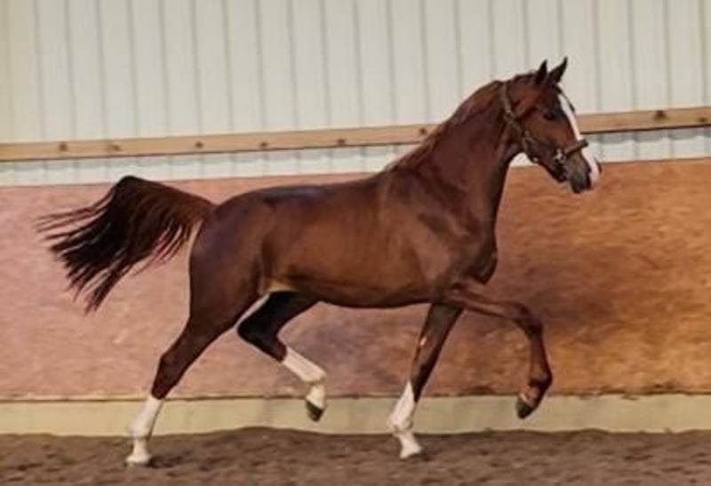 Oferujemy tutaj – ponieważ obecnie nie mamy jeźdźca – doskonałą klacz 3-letnią (film z wolnego ruchu w wieku 2 lat, film z jazdy pod jeźdźcem powstał podczas trzeciego treningu). Ta klacz była już trzy razy oceniana i za każdym razem uzyskała potwierdzenie! Jest elegancka, ma świetną budowę i w każdym z trzech podstawowych zakresów ruchu wypada ponadprzeciętnie. Wychowała się w stadzie na Pomorzu Wschodnim. W obsłudze, przy załadunku i u kowala jest nadal łatwa i przyjazna :) Chętnie prześlemy aktualne zdjęcia RTG! Kto zna się na szkoleniu naprawdę świeżo zaczynającej się, minimalnie już jeżdżonej klaczy, ten szybko może znaleźć się na listach rankingowych. Przewidujemy, że otrzymamy wiele telefonów – w pierwszej kolejności chcielibyśmy sprzedać już doświadczonym zawodnikom startującym na zawodach...! Dlatego też zależy nam na szybkiej finalizacji transakcji. Ojcem klaczy jest topowy reproduktor Ibiza (Desperado), niestety nie można go wybrać w sekcji „pochodzenie” w ogłoszeniu... stamtąd pochodzenie matki jest znane i odnosi sukcesy! Kontakt prosimy przez WhatsApp (0172-5271622). Pozdrawiamy!