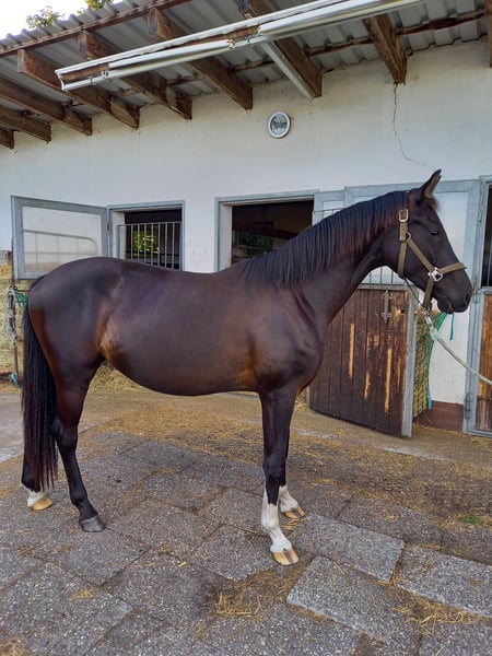 **Verkaufsanzeige:** Zum Verkauf steht eine vielversprechende Oldenburger Stute, geboren im Jahr 2023. Diese elegante, schwarzbraune Nachwuchsstute besticht durch ihre harmonische Konstitution und ihr vielversprechendes Potenzial im Dressursport. Mit einem monentanen Stockmaß von 167 cm verfügt sie über eine ansprechende Größe, und sehr guten Gangarten. Sie befindet sich in einem hervorragenden Pflegezustand wird regelmäßig entwurmt, geimpft und dem Hufschmied vorgestellt Bisher ist sie ganztägig auf großen Koppel herangewachsen und hatte nachts Ihre eigene Box zu Verfügung. Der Vater Skyline to B von St. Schufro x Ampere ist ein hocherfolgreicher Dressurhengst unter anderem war er vierter ber der WM der jungen Pferde 2023 und wurde im WM Vorlauf 2023 zweiter. Er ein prämierter Vererber, schwedischer Champion und zweifacher Titelgewinner in Schweden. Der Muttervater For Ferrero ist ein gekörter KWPN Hengst von For Romance I aus einer Don Crusador Mutter und hat die beste Hengstleistungsprüfung 2017 abgelegt. Er war Pavo Cup Finalist und besitzt drei überdurchschnittliche Grundgangarten, sowie ein überdurchschnittliche Fohlenjahrgänge. Ein portlicher Dressurvererber mit viel Ausdruck. Princess ist ein Pferd mit viel Potenzial für die Zukunft – eine echte Bereicherung für jeden Dressurstall. Für weitere Informationen oder einen persönlichen Besichtigungstermin stehe ich gerne zur Verfügung.