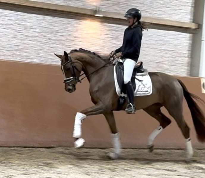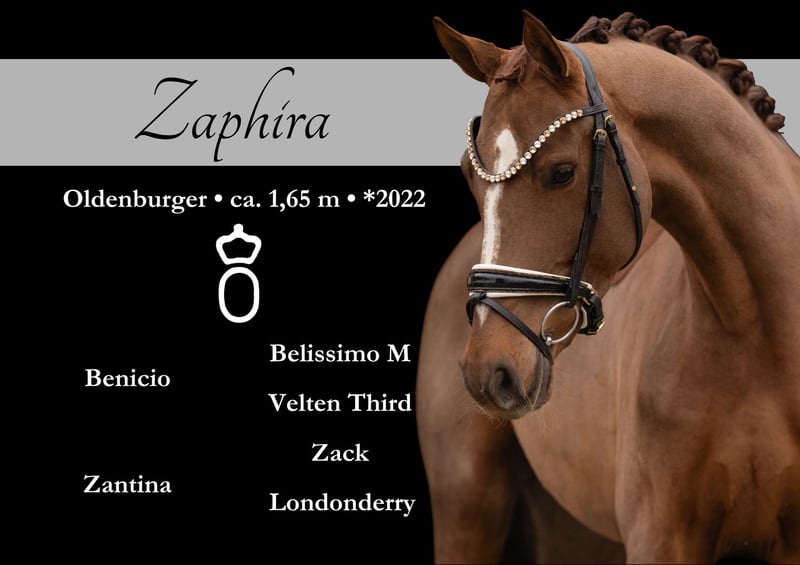 Dear Interested Parties, Please send me a WhatsApp message to arrange a viewing or trial ride. For further questions, I am available during the day via WhatsApp, and you can reach me best by phone between 4 PM and 7 PM. I look forward to hearing from you. www.angelina-devittorio.de ⭐️Zaphira⭐️ Age: 3.5 years (2022) Height: approximately 16.1 hh Pedigree: Benicio x Zack Training status: ridden X-ray: Good radiographs available For sale is a stunning, compact dark chestnut mare, daughter of the top sire Benicio. She has three very good basic gaits, comes directly from a breeder, and is now solidly backed. Despite her short time under saddle, she always aims to please and strives to do everything right. A jewel of exceptional quality is developing here – an excellent young dressage horse with potential for the big arena. Still in full development, this is a promising young horse with great potential. Good radiographs are already available. She is very well-behaved and uncomplicated in handling, very tolerant, and already quite mentally mature when ridden. Of course, experience with backed horses is a prerequisite due to her age, but she is absolutely suitable for amateurs. She shows no bad habits and always tries her best to do everything correctly. A highly talented young horse at a very attractive price! ⚜️Phone: 0171-3438949 ⚜️a.devittorio@web.de ⚜️https://www.ehorses.de/angelinadevittorio Facebook and Instagram: Angelina De Vittorio