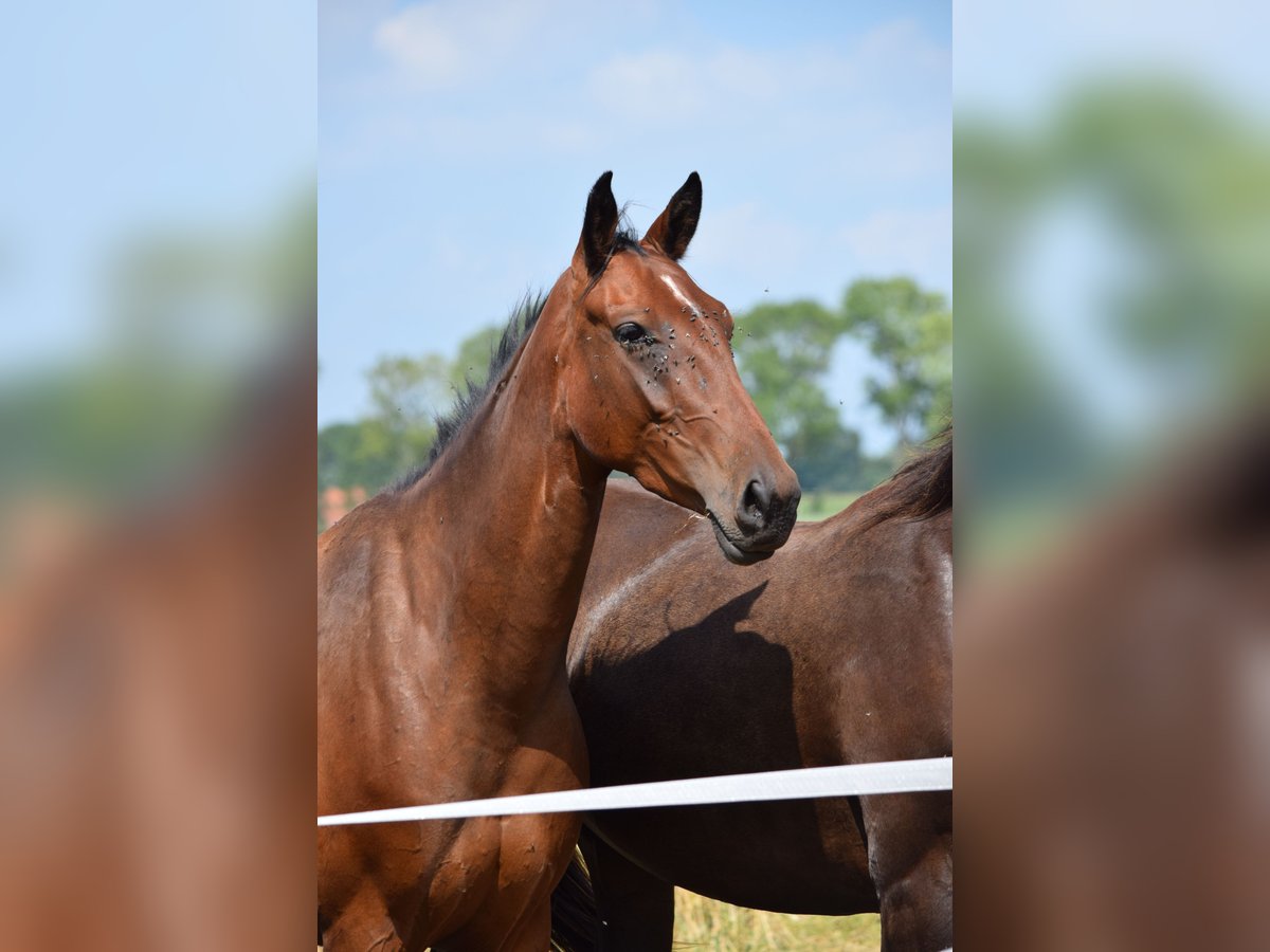 This expressive 3 year old mare by Diamond First convinces with a great character and excellent gaits. Her dam is a purebred thoroughbred mare (Achal-Tekkiner). The Achal-Tekkiner is one of the oldest horse breeds. They are considered to be very robust and enduring. They are well suited for endurance riding and eventing. The maternal side also has very good gaits and with the combination of Diamond First, First Light has the best prerequisites for a successful future. She already knows the horse walker, free jumping, trailer driving and farrier, but is still raw. We are planning to start training with her in winter. She is currently approx. 1.56 m She can be viewed at any time.
