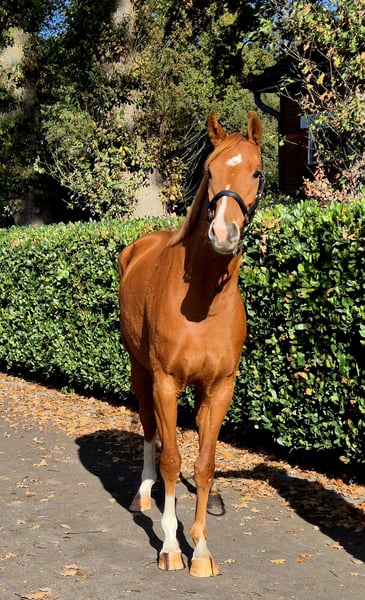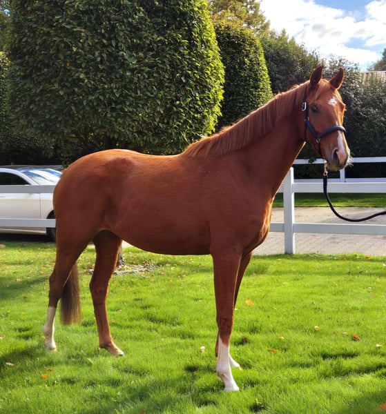 Se vende una preciosa y elegante yegua de color zorro nacida en 2022, procedente de la familia directa de Blue Hors Zepter. Su linaje incluye a Zackerey - Sirlano (Sir Donnerhall) - Wolkentanz II. "Nuvola" es un ejemplar extremadamente sociable, cariñoso y con un carácter muy amable, que disfruta de toda atención que recibe. Cuenta con tres buenas andaduras, mide actualmente aproximadamente 1,65 m de alzada, y es socialmente competente, además de ser tranquila en la herradura y en el remolque. Recientemente se ha comenzado con el trabajo de iniciación en la silla, por lo que ya conoce el contacto con el jinete en movimiento (video). Ha superado esta primera etapa con éxito, y posteriormente ha regresado a su grupo de potros en el paddock. Actualmente, permanece allí, por lo que no es posible montar todavía para una prueba en el momento. Dispone de una radiografía reciente (incluyendo la zona dorsal). Además, sus dientes han sido revisados y está vacunada contra la influenza, herpes y tétanos.