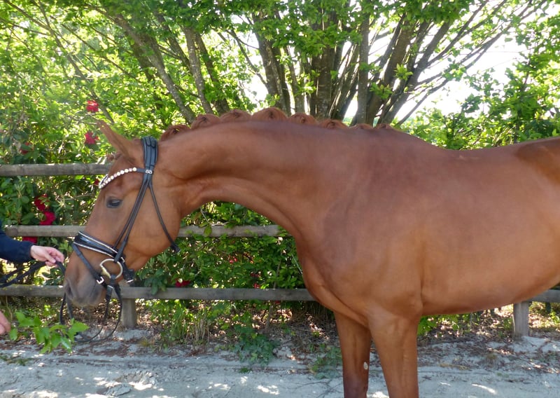 Vivien ist eine bildhübsche Stute, die jeden verzaubert mit ihrem Charme. Sie ist mit drei guten Grundgangarten und einem sehr angenehmen Go ausgestattet. Immer motiviert macht sie jeden Tag Spaß bei der Arbeit. Sie ist jetzt auf Dressurpferde A Niveau und bereit für ein tolles neues Zuhause. Im Umgang und unter dem Sattel ist sie immer brav und will nichts falsch machen. Vivien ist bei uns geboren und natürlich regelmäßig geimpft , entwurmt und dem Hufschmied vorgestellt worden. Gute Röntgenbilder liegen vor. Bei Interesse gerne anrufen.