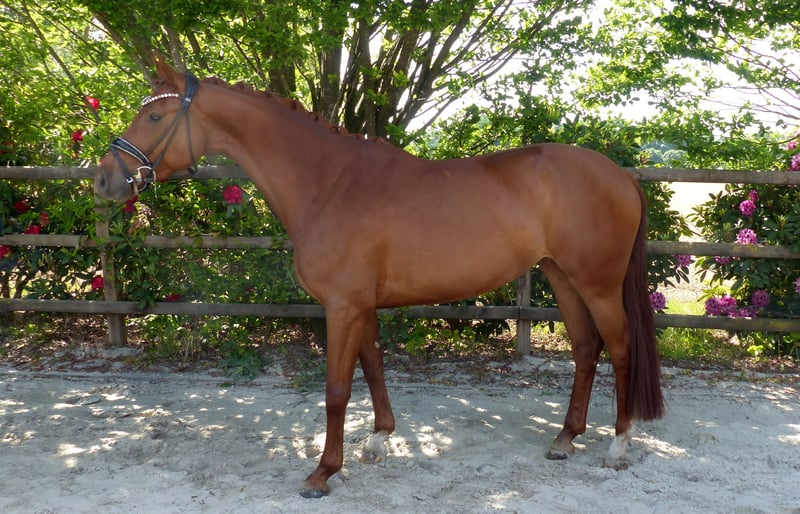 Vivien is een prachtige merrie die iedereen betovert met haar charme. Ze beschikt over drie goede basisgangen en een zeer aangename draf. Altijd gemotiveerd maakt ze elke dag plezier in de omgang en onder het zadel. Ze staat nu op niveau Lichte Tour Dressuur en is klaar voor een geweldig nieuw thuis. In de omgang en onder het zadel is ze altijd braaf en wil ze niets verkeerd doen. Vivien is bij ons geboren en natuurlijk regelmatig gevaccineerd, ontwormd en voorgesteld aan de hoefsmid. Goede röntgenfoto's zijn aanwezig. Bij interesse graag bellen.