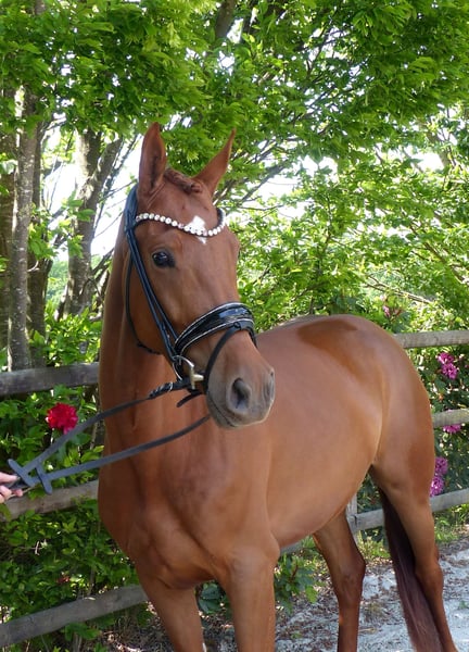 Vivien is a stunning mare who captivates everyone with her charm. She has three good basic gaits and a very pleasant canter. Always motivated, she makes daily training enjoyable. She is currently competing at Dressage Horse Level A and is ready for a wonderful new home. In handling and under saddle, she is always well-behaved and eager to please. Vivien was born with us and has been regularly vaccinated, dewormed, and presented to the farrier. Good X-ray images are available. Please feel free to call if you are interested.
