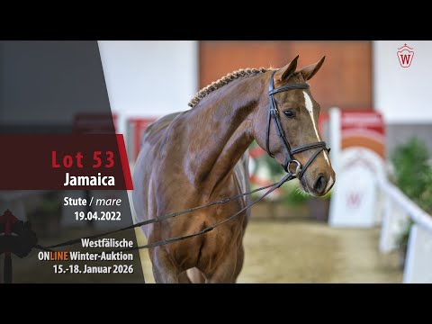 Jamaica ist eine sportliche und elegante Springathletin mit viel Qualität, Charme und beeindruckender Elastizität. Vater Jasper war mit seinem Reiter Kent Farrington hocherfolgreich und konnte Siege und Platzierungen auf den renommierten Turnieren wie Spruce Meadows, Valkenswaard, Berlin, Tryon und Samorin verbuchen. Alle Infos zum Auktionslot hier: https://bit.ly/WestWinterAuk