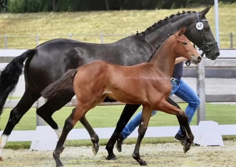 Carla is a lovely, compact mare with three excellent basic gaits. She has been backed but is currently not ridden due to her owner being pregnant. She is gentle in handling but a little bit shy or timid. She also shows talent in jumping and could be used as an all-rounder. I believe she is a great young horse candidate at a fantastic price. She is a horse that enjoys working and, once motivated again, can handle 4-6 training sessions per week. I can see her later as a great amateur or leisure horse. Her vet check, including back, was excellent. Her teeth and osteopathic treatments are regularly maintained. She is farrier- and loading-friendly. Unfortunately, she cannot currently be tried under saddle, which is reflected in the price. However, she is in top health, so that is not a concern.