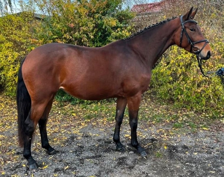 Carla, C'est une jument compacte et élégante, dotée de trois allures de base excellentes. Elle a été dressée, mais en raison de la grossesse de sa propriétaire, elle n'est plus montée pour le moment. En manège, elle est douce, mais un peu craintive ou timide. Elle montre également du talent en saut d'obstacles et pourrait être utilisée comme cheval polyvalent. Je pense qu'il s'agit d'un super jeune cheval à un prix avantageux. C'est un cheval qui aime travailler et, lorsqu'elle est remise en selle, elle peut supporter un entraînement de 4 à 6 fois par semaine. Je peux l'imaginer plus tard comme un bon cheval de niveau A/L. Son contrôle vétérinaire, y compris la radiographie du dos, était excellent. Dents et ostéopathe ont été régulièrement consultés. Elle est ferrée et sait charger dans un van. Malheureusement, elle ne peut pas être essayée en ce moment, d'où le prix correspondant. Cependant, elle est en parfaite santé, ce n'est donc pas un problème.