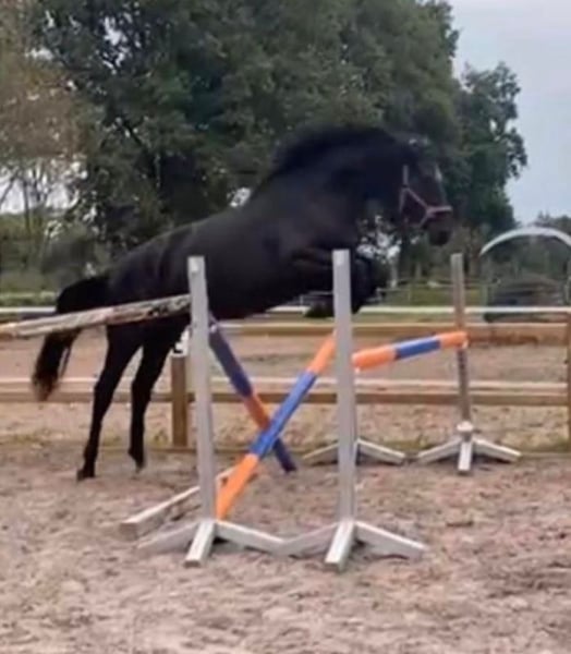 Zuletzt war sie in Springberitt, um Sie für ihre ersten kleinen Turniere und den Verkauf vorzubereiten. Sie zeigt einen guten Sprung und läuft alle 3 GGA altersentsprechend gut.