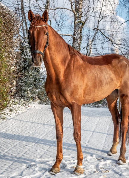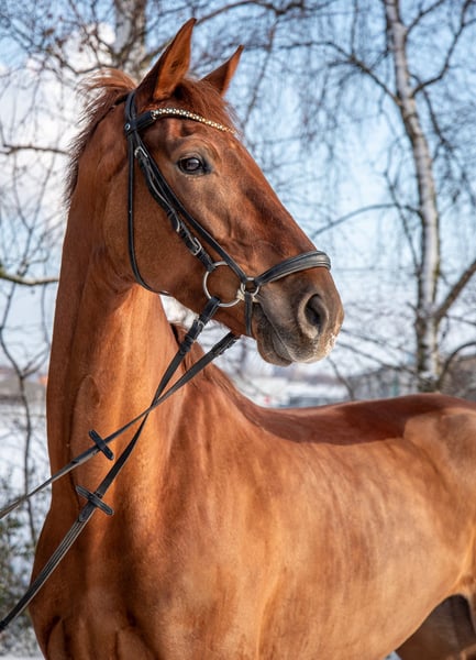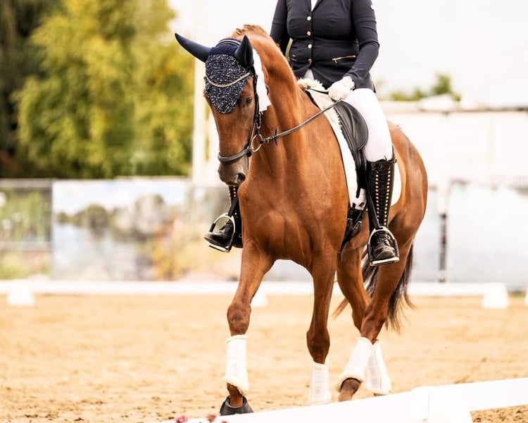 This highly rideable dressage mare is absolutely steady nerves and has consistently placed well in all show jumping competitions. She provides an excellent riding feel and is confidently at elementary level. She has already effortlessly entered the L-level dressage tests. With her outstanding gaits, exemplary attitude, and wonderful character, she has all the potential for further development. She is also very well-behaved and reliable at competitions! The mare is not only suitable for top-level sport! Thanks to her calmness and dependable nature, she is ideal for riders with a gentle touch, especially juniors and families. She is always well-mannered and motivated. Naturally, she loads without any issues. She is also fearless and a pleasure to ride in the terrain! Additionally, there is the possibility to breed a top-class foal with her. The mare boasts excellent bloodlines and is a daughter of the S-rated premium stallion My Vitality, full brother to Vitalis. My Vitality completed an outstanding stallion performance test in Denmark and was crowned Danish champion of the four-year-old riding horses. He placed at the World Championships for Young Dressage Horses at ages six and seven. We would be happy to show you this wonderful mare in person and are available for any questions at any time! Feel free to contact us also via WhatsApp: +49 176 55323449.