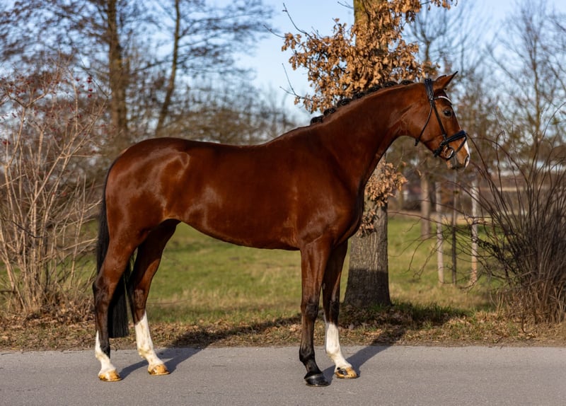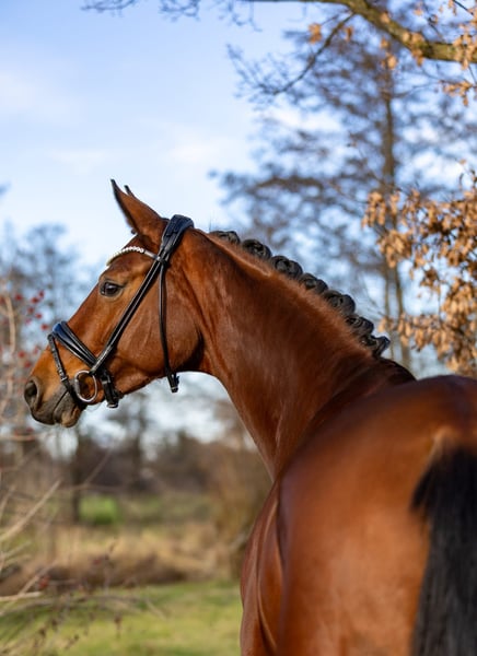 Esta hermosa y elegante yegua de color marrón no solo impresiona por su apariencia, sino especialmente por su carácter excepcionalmente amable y encantador. Es una yegua sumamente simpática, confiada, cercana a las personas y siempre con la mente clara. Un caballo que confía en su jinete y que, a su vez, transmite esa confianza. Bajo la silla, se muestra muy fácil de montar, fiable y agradable de llevar. Cuida a su jinete, es honesta, leal y predecible en todo momento. Por ello, también es adecuada para jinetes menos experimentados y, con la atención adecuada, puede servir igualmente como caballo para niños o para la familia. Su tranquilidad interior, su claridad y su “corazón de oro” la convierten en una verdadera compañera de confianza. Además de su carácter excepcional, posee tres buenas andaduras básicas y una descendencia sobresaliente: su tatarabuelo es el famoso Totilas, y por parte de madre desciende de Florestan y Donnerhall, líneas de sangre de rendimiento en la doma clásica. Esta combinación la hace altamente interesante tanto desde el punto de vista deportivo como de cría. La yegua está inscrita en el Libro I de caballos Oldenburg y cumple con las mejores condiciones para, tras su carrera deportiva, desempeñarse como una yegua de cría de alta calidad. Un caballo con múltiples posibilidades de uso: como fiable caballo de doma, compañero para jinetes aficionados ambiciosos, instructora con corazón o, más adelante, como valiosa yegua de cría. Un caballo realmente especial para personas que exigen carácter, calidad y perspectivas futuras. Ubicación: Rosenheim