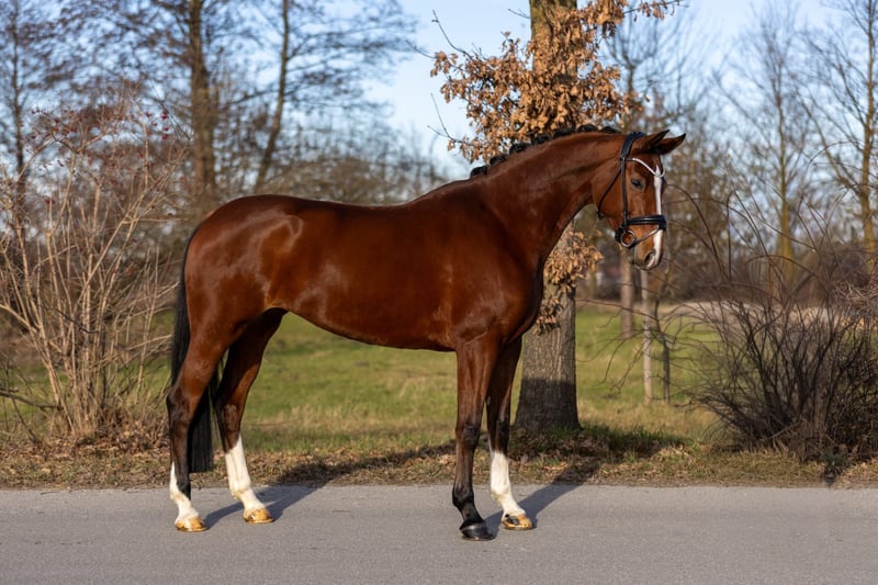 Diese wunderschöne braune Stute überzeugt nicht nur durch ihre Optik, sondern vor allem durch ihren außergewöhnlich liebenswerten Charakter. Sie ist absolut sympathisch, zutraulich, menschenbezogen und dabei stets klar im Kopf. Ein Pferd, das seinem Reiter Vertrauen schenkt – und es zurückgibt. Unter dem Sattel zeigt sie sich sehr unkompliziert, zuverlässig und angenehm zu reiten. Sie passt auf ihren Reiter auf, ist ehrlich, verlässlich und jederzeit berechenbar. Dadurch ist sie auch für schwächere Reiter geeignet und kann sich – bei entsprechender Betreuung – ebenso gut als Kinder- oder Familienpferd anbieten. Ihre innere Ruhe, ihre Klarheit und ihr „Herz aus Gold“ machen sie zu einem echten Verlasspferd. Neben ihrem traumhaften Wesen bringt sie drei sehr gute Grundgangarten sowie eine herausragende Abstammung mit: Ihr Urgroßvater ist der weltbekannte Totilas, mütterlicherseits führt sie über Florestan und Donnerhall – absolute Leistungslinien des Dressursports. Diese Kombination macht sie sowohl reiterlich als auch züchterisch hochinteressant. Die Stute ist ins Zuchtbuch I der Oldenburger Pferde eingetragen und erfüllt damit beste Voraussetzungen, um nach ihrer sportlichen Laufbahn auch als hochwertige Zuchtstute eingesetzt zu werden. Ein Pferd mit sehr vielen Verwendungsmöglichkeiten: als verlässliches Dressurpferd, als Partner für ambitionierte Amateure, als Lehrmeister mit Herz – oder später als wertvolle Zuchtstute. Ein rundum besonderes Pferd für Menschen mit Anspruch an Charakter, Qualität und Perspektive. Standort: Rosenheim