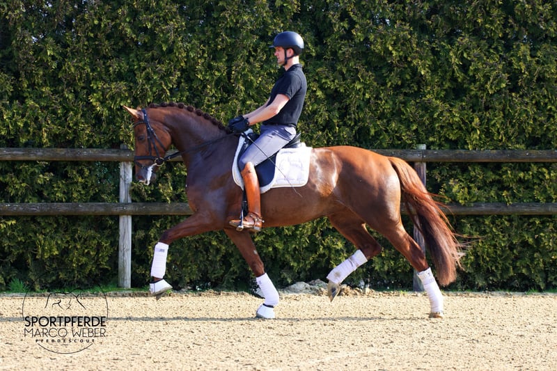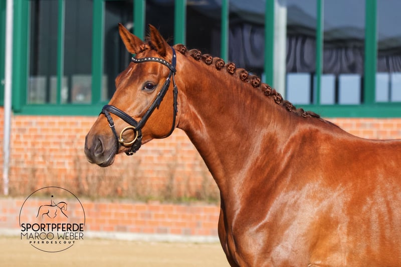 Oldenburger • Stute • *2021 • ca. 1,68 m ⚜️ Vivino – Hochadel ⚜️ ❤️ Traumhafte Fuchsstute mit Perspektive ❤️ Diese sehr typvolle Tochter von Vivino aus einer Hochadel-Mutter überzeugt durch enorme Ausstrahlung, hervorragenden Charakter und viel Qualität unter dem Sattel. Eine moderne, feinfühlige Stute mit genau dem richtigen Maß an Go und Leistungsbereitschaft für den weiteren sportlichen Weg. Die Stute wurde Ende 3-jährig schonend angeritten und erhielt anschließend ausreichend Zeit zur positiven körperlichen und mentalen Entwicklung. Noch nicht öffentlich vorgestellt – somit unverbraucht und mit viel Perspektive für ihre weitere sportliche Karriere. Ein echtes Ausbildungspferd mit Perspektive für höhere Aufgaben: Sie reagiert sensibel und ehrlich auf die Hilfen, arbeitet fleißig mit und bringt eine sehr positive Arbeitseinstellung mit. Sie vermittelt ein stimmiges, angenehmes Reitgefühl und zeigt sich jederzeit klar im Kopf. Drei sehr gute Grundgangarten, eine aktive Hinterhand und ihre klare Leistungsbereitschaft runden das Gesamtbild ab. ➡️ Direkt aus Züchterhand ✅ Sehr guter Röntgen-TÜV inkl. Rücken und Hals vorhanden 📍 Standort: bei Osnabrück 📞 Kontakt: +49 173 3013499