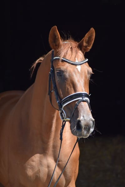 This elegant young mare is seeking a new home where she can continue to be developed. Grazia is very trainable and has already achieved a very good mare performance test. All basic gaits received scores of 8.0 or higher (walk 8.5, trot 8.5, canter 8.0). She also shows responsiveness and excellent technique in free jumping, for which she was awarded a score of 9.0. The mare was born and raised with us. She is fearless and calm. Her sire, Ganderas, was also known for his bravery, rideability, and powerful movement. If you're interested in this promising dressage prospect, please feel free to call us at 0170 8159909. We look forward to your call.