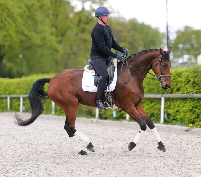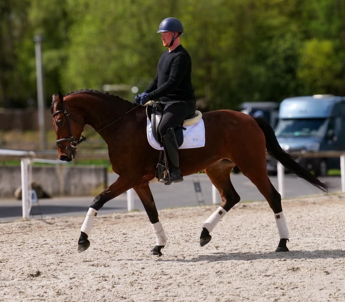 Name: Prinzessin Rasse: Oldenburger Geschlecht: Stute Geburtsdatum: 05.03.2021 Alter: 5 Stockmaß: 1.70m Farbe: Braun Abstammung: Baron von Benicio (Belissimo M/ Sir Donnerhall I) aus einer All at Once (Ampere/Hofrat) Mutter Charakter: menschenbezogen, neugierig, intelligent, lernwillig, gelassen, mutig Ausbildung/Eignung: geritten, Freizeit, Dressur, Springen Geländeerfahrung: aufmerksam, unerschrocken, nervenstark, in der Gruppe Gesundheit: entwurmt, geimpft, Barhufer, ekzemfrei, Zähne kontrolliert, osteopathisch behandelt Haltung: Box, Offenstall Besonderheiten: Sehr gute elastische Grundgangarten, sitzbequem, schmiede und verladefromm, herdenverträglich Die genannten Eigenschaften beruhen auf unserer persönlichen Einschätzung und stellen keine zugesicherten Merkmale dar. Preis: 7900 (Bruttopreis) Haben wir ihr Interesse geweckt? Um Ihnen einen besseren Eindruck von Prinzessin zu geben, senden wir Ihnen sehr gerne Ihr Reitvideo zu. Selbstverständlich stehen wir Ihnen für eine ausführliche Beschreibung des Pferdes, persönliche Beratung und zur Beantwortung aller Ihrer Fragen auch telefonisch zur Verfügung. Bitte schreiben Sie uns hierfür jederzeit eine WhatsApp Nachricht, oder rufen unter folgender Telefonnummer an: +49 15119487595 Unsere Telefonzeiten sind täglich von 7:00 - 13:30 sowie ab 20:00Uhr. Wir freuen uns über Ihre Kontaktaufnahme! Eine klinische oder Röntgenologische Ankaufsuntersuchung kann gerne vom Tierarzt Ihrer Wahl durchgeführt werden. Natürlich kann Prinzessin sicher und komfortabel in ihr neues Zuhause geliefert werden. Wir kümmern uns um alle notwendigen Vorbereitungen und den Transport, damit Ihr neues Pferd stressfrei, gut betreut, versichert und wohlbehalten im neuen Zuhause ankommt. Zurzeit präsentieren wir eine sorgfältig ausgewählte Vielfalt an Verkaufspferden. Bei uns finden Sie garantiert Ihr Traumpferd. Besuchen Sie uns auch gerne auf unserer Homepage unter: www.marvinsroyalhorses.de. Sehr geehrte Kunden, gerne stellen wir Ihnen unsere Pferde vor und führen, putzen, satteln, longieren, Bodenarbeit sowie Probereiten in der Reithalle, auf dem Platz oder im Gelände ist Ihnen möglich, um Ihr neues Familienmitglied näher kennenzulernen. Dieses kostet für ein Pferd 40€, für jedes weitere 30€ und wird beim Kauf wieder erstattet. Unsere Adresse lautet: Grube Ferdinand 50 53577 Neustadt Wied Google Maps: marvinsroyalhorses