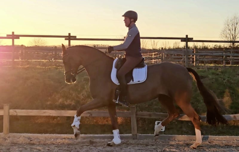 Weihjana ist eine 5 jährige bildschöne und brave Stute mit ordentlichem Schritt, Trab mit viel natürlichem Schwung und das naturtalent für Passage und Piaffe. Gallop bergauf und groß. Sie hat einen ehrlichen und absolut braven Charakter ist nicht heiß oder faul, sondern mit dem perfekten angenehm Go ausgestattet. Sie ist spät angeritten und deswegen etwas hinter der Ausbildung wie sie eigentlich schon sein könnte. Daher aber auch die Chance einen Rohdiamenten zum wirklich „günstigen“ Preis zu bekommen. Im Bezug auf ihrer Qualität und vor allem ihrem braven und artigen und immer wollenden und bezaubernden Charakter ist dies wirklich ein one in a million horse.