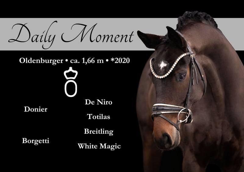 Liebe Interessenten, Für Terminvereinbarungen Probereiten senden Sie mir bitte eine WhatsApp. Für weitere Fragen bin ich tagsüber per WhatsApp erreichbar, telefonisch erreichen Sie mich am Besten zwischen 16 und 19 Uhr. Ich freue mich auf eine Kontaktaufnahme www.angelina-devittorio.de ⭐️Daily⭐️ Alter: 6 Jahre (2020) Größe: ca 1,65 m Abstammung: Donier x Breitling Ausbildungsstand: Dressurpferde A mehrfach siegreich und platziert AKU: Gute Röntgenbilder vorhanden Standort: 87700 Memmingen Zum Verkauf steht eine wunderschöne, kompakte sechsjährige Stute von Donier. Sie ist eine absolute Traumstute mit drei hervorragenden Grundgangarten, die sie bereits eindrucksvoll unter Beweis stellen konnte, unter anderem mit einem Sieg in einer Dressurpferdeprüfung der Klasse A. Im täglichen Umgang zeigt sie sich super lieb, unkompliziert und jederzeit brav, ihr Wesen ist ausgesprochen freundlich und angenehm. Auch unter dem Sattel ist sie brav und zuverlässig, benötigt jedoch einen etwas versierten Reiter, der sie korrekt weiter fördert. Sie ist niemals böse, eignet sich aber nicht für unerfahrene oder schwache Reiter. Für Amateure ist sie sehr gut geeignet, vorausgesetzt ein solides Reitniveau ab L. Aktuell befindet sie sich auf Dressurpferde-L-Niveau und ist demnächst startklar für diese Klasse. Gute Röntgenbilder liegen vor. Der Verkauf erfolgt aufgrund von Aufgabe des Reitsports und ausschließlich in allerbeste Hände. ⚜️Tel: 0171-3438949 ⚜️www.angelina-devittorio.de ⚜️a.devittorio@web.de ⚜️https://www.ehorses.de/angelinadevittorio Facebook und Instagram Angelina De Vittorio
