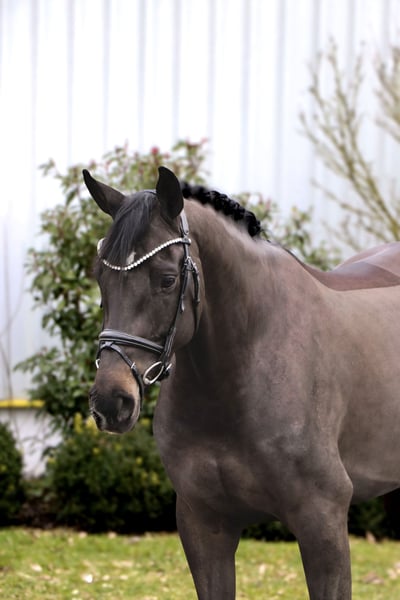 „Diva“ ist eine bildschöne Stute für die ganze Familie. Sie ist super brav und ruhig im Umgang, von jedem zu Händeln und absolut nicht stutig, lässt sich überall und von jedem anfassen und ist daher auch super für Kinder geeignet. Beim Reiten überzeugt sie mit ihrem coolen Charakter, sie lässt sich nicht ablenken, ist immer konzentriert und bereitet ihrem Reiter jeden einzelnen Tag Freude. Sie hat eine altersgerechte und kopfklare Ausbildung genossen, kennt auch die Arbeit an der Longe und ist vorbildlich erzogen. Durch ihr hohes Engagement und ihre schlaue Art lernt sie sehr schnell neues und lässt Erlerntes jederzeit abrufen. Sie geht ganz einfach in Anlehnung und angenehm vorwärts, dadurch vermittelt sie ein sehr angenehmes Reitgefühl und viel Sicherheit. Auch am Springen zeigt die Stute viel Freude, sie geht brav überall rüber, guckt nichts an und ist das ideale Pferd um Spaß am Springen zu bekommen. Im Gelände ist „Diva“ brav und unerschrocken. Sie geht sowohl in der Gruppe als auch alleine anständig vom Hof und zeigt sich im Gelände sehr souverän und in allen drei Grundgangarten brav zu reiten. Auch Straßenverkehr ist kein Problem. Wir können uns diese aufgeschlossene super liebe Stute auch sehr gut für Kinder vorstellen, die mit Unterstützung in den Reitsport hineinwachsen wollen. Ebenfalls geeignet ist sie natürlich für jeden ambitionierten Reiter, der sowohl am gehobenen Reitsport und an Turnieren teilnehmen möchte, als auch ein Partner zum entspannten ausreiten sucht. UNBEDINGT GANZES VIDEO ANSCHAUEN, GELÄNDE UND SPRINGEN IST AUCH ZU SEHEN. Das Organisieren von einem Transport ins neue Zuhause ist kein Problem! Wichtige Hinweise: • Stockmaß-Angaben sind geschätzt und nicht exakt nachgemessen • Alle Beschreibungen sind subjektive Einschätzungen des Verkäufers und keine zugesicherten Eigenschaften Aktuelle Röntgenbilder ohne Befund sind vorhanden, sowie eine einwandfreie klinische Untersuchung. Bei Interesse und weiteren Fragen melden Sie sich gerne jederzeit telefonisch unter 015140555583. Wir sind auch am Wochenende und an Feiertagen erreichbar. Ein Probereiten ist jederzeit möglich.