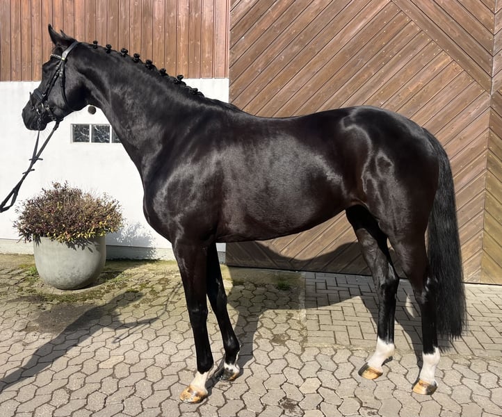 Zum Verkauf steht eine elegante Oldenburger Stute, geboren im Jahr 2020. Diese beeindruckende Rappstute überzeugt jeden durch ihr Ausstrahlung und bildschöne Erscheinung. Sie ist 169cm groß und hat aktuelle Röntgenbilder. Die Stute beherrscht das gesamte L-Programm. Ihr freundliches Wesen und ihre Bereitschaft, Neues zu lernen, machen sie zu einer idealen Partnerin für den Dressursport. Sie wird mit Sicherheit eine Schleifensammlerin. Zur Abwechslung macht sie auch gerne einen kleinen Sprung. Diese Oldenburger Dressurstute verfügt über angenehmes Temperament und Lernbereitschaft. Sie ist gesund, regelmäßig entwurmt und bei guter Haltung sowie Pflege zuverlässig im Alltag. Bei Interesse oder weiteren Fragen stehe ich Ihnen gerne zur Verfügung. Ein persönliches Kennenlernen ist jederzeit möglich.