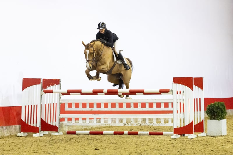 A light-footed horse with easy scope and experience at 1.20m level. She is pleasant to ride and combines quality with a good attitude. She has a big canter, is quick off the ground and jumps with conviction. Beautifully long-legged and modern in type. A horse with the right blood for sport and the mindset to develop further.