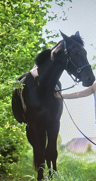 With a heavy heart, I have to part ways with my 6-year-old, 175 cm tall black Oldenburg mare Liv, as I no longer have enough time to give her the attention she deserves. She is completely unspoiled. She rides confidently alone in the fields and is very well-behaved in a group. I have jumped her only a few times, mostly over small cross rails. Her calm demeanor and fearless nature truly set her apart. She is always manageable on the ground, but please note, she is not suitable for beginners! Trial rides are possible for a small fee. Her tack can be included upon request. Feel free to contact me with any questions.