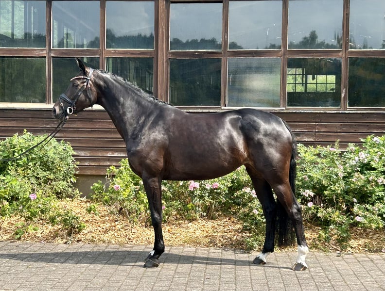 For sale is a 6-year-old Oldenburg mare in a smaller, compact format, who impresses with her charming nature, fine responsiveness, and good basic quality. She is ideal for riders looking for an elegant, sensitive horse that is easy to sit. Sire line – Rubin Royal OLD: Rubin Royal, himself successful at Grand Prix under Hendrik Lochthowe, is considered one of the most valuable riding ability sires of the last two decades. As a son of Rubinstein I and full brother to Romanov, Blue Hors Rockefeller, and other sport greats, Rubin Royal stands for consistent willingness to perform, highest rideability, and strong nerves. He was among the top 1% of the FN breeding value estimation for dressage for many years, produced over 25 licensed sons, and many successful offspring in the S-class. His offspring are characterized by intelligent temperaments, rhythmic movements, and dressage quality up to the highest levels. Dam line – Florencio I: Florencio I was the World Champion of young dressage horses in 2003 and 2004, winning these titles with spectacular scores of up to 10.0 in trot and canter. He combines Dutch rideability lineage (Florestan x Weltmeyer blood) with modern, elastic movements and a clear willingness to perform. Florencio's descendants are successful up to Grand Prix, impressing with elasticity, scope, and intelligence in training. As a maternal grandfather, Florencio I brings valuable rideability impulses and a sporty-modern line to breeding. This pairing results in a harmoniously bred dressage mare that is highly interesting both genetically and athletically. Rubinera was gently started under saddle at five years old and is now at a solid L-level, being carefully introduced to the tasks of the class. She displays a clear line, relaxed movement, and fine contact. Rhythm, back activity, and good cooperation characterize her. She knows small jumps, goes confidently into the terrain with a competent rider, and can be reliably guided into new situations. The training is pressure-free; she shows a willingness to learn and is very sensitive to aids – ideal for riders looking for a sensitive, honest horse with potential. This mare is very sensitive, empathetic, and people-oriented. She responds promptly to light aids and provides her rider with a soft, fine riding feeling. She is not suitable for inexperienced riders – she needs a secure, calm person she can trust. Under the right rider, she is cooperative, honest, and willing to perform. During her mare performance test, she impressed with good quality, rideability, and type, and was awarded the association premium – a clear quality feature for breeding and performance. Due to her lineage, format, and correct conformation, she is also highly interesting for future breeding use. Rubinera is ideal for ambitious leisure riders or dressage riders with feel, who are looking for a small, easy-to-sit, and finely ridden horse. Given her lineage, attitude, and movement, further dressage development is not far off – whether for competitive sports or as a future breeding mare. A small-format, charming Oldenburg mare with proven dressage lineage, very good basic quality, and a clear character. For confident riders looking for a fine, honest horse with perspective.