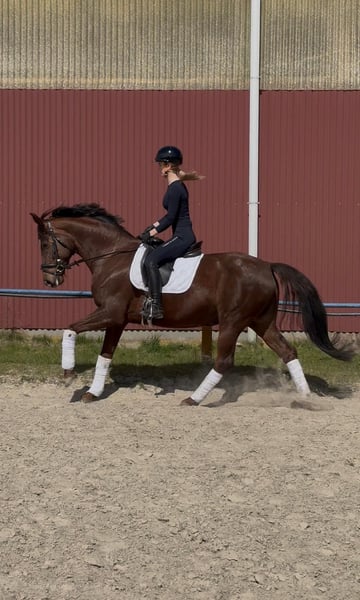Świetna 6-letnia klacz ujeżdżeniowa po Vitalis x Sir Donnerhall. Obecnie na poziomie klasy A w ujeżdżeniu, wykazuje dużą chęć do pracy i doskonałą posłuszeństwo.
