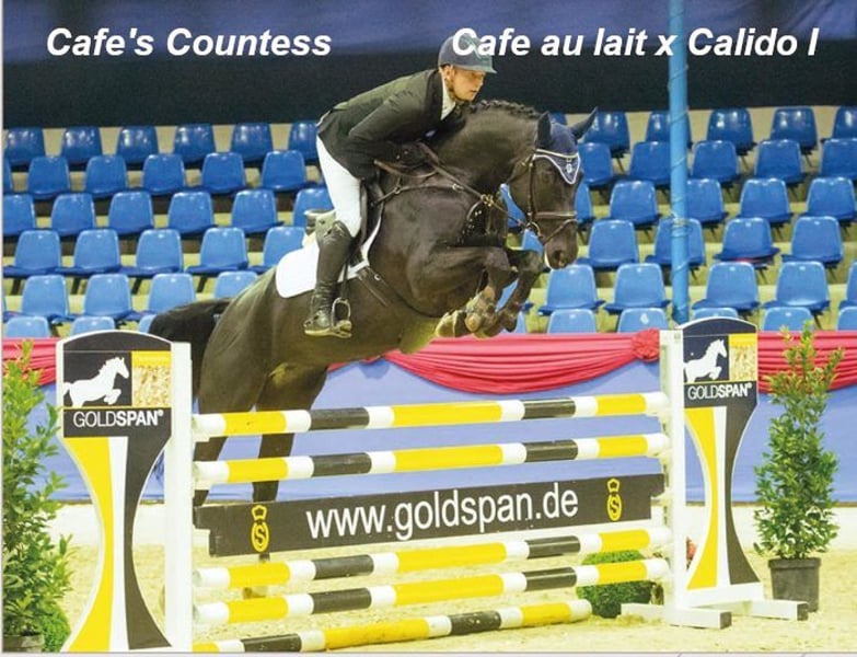 Una colorida hija de Million Dollar con gran movimiento, parida para 2025 por el semental campeón, ganador de HLP y finalista de BuCha Cafe au lait, que lleva varios años llamando la atención con su increíblemente exitosa descendencia en doma de nivel avanzado y salto de obstáculos. Cafe's Casimir" (Cafe au lait x Calido x Grannus) fue el ganador de la subasta Oldenburg Elite, ya era un ganador en doma de nivel medio (M) a una edad temprana y fue de nuevo un ganador en sus primeras competiciones de doma de nivel avanzado (S) a la edad de 7 años. Ahora triunfa en las clases internacionales de Intermediaire I. La yegua de Kasselmann, Cafe's Caletta (Cafe au lait x Calato), también ha ganado doma clásica de nivel avanzado (S) y Gran Premio internacional. Cafe's Matts (Cafe au lait x Don Frederico) fue el segundo caballo de doma más caro en las ventas mixtas de verano de Oldenburgo. Otros caballos jóvenes nacidos de yeguas de cría orientadas al salto ya se han clasificado varias veces en pruebas para caballos jóvenes de doma clásica de nivel avanzado (A) a medio (M) y destacan por sus movimientos fuertes y su lucidez. No cabe duda de que los hijos de Cafe au lait convencen en salto de obstáculos hasta el nivel avanzado. El licenciado Cafe's Champus fue Subcampeón del Mundo de caballos jóvenes con René Tebbel y también se cría con nosotros. También con licencia y de nuestro programa de cría: Cafe Junior (Cafe au lait x Silvio I), clasificado internacionalmente en concursos de salto de nivel avanzado (S*). Cafe's Columbo (Cafe au lait x Belstaff): éxito deportivo en Francia. Cafe's Don Rubin (Cafe x Donnerhall): 4 años, bronce en la final del Campeonato de Salto de Obstáculos Dobrocker Deister en su primera clase de salto de nivel elemental (L). Ya ha triunfado en el nivel principiante para jóvenes saltadores. El propio Cafe au lait fue finalista del Bundeschampionat con Philipp Weishaupt y ha triunfado hasta el nivel avanzado (S***) de salto de obstáculos, pero también tiene tres aires espectaculares y ha sido entrenado hasta el nivel avanzado (S) en doma clásica. Estacionado con Paul Schockemöhle, ya ha sido padre de varios saltadores de éxito internacional, entre ellos "Royce", vencedor del FEI CSI5* 500.000 $ Rolex Grand Prix Wellington. Nuestros potros reciben diariamente pienso mineral y foal starter, EQUISTRO Haemolytan e Ipaligo Foal con regularidad, desparasitación y un herrador, por supuesto. Las madres también reciben un pienso especial para yeguas durante toda la gestación, pienso de zumo diario y aceite de linaza, así como heno ad libitum. De este modo, nuestras crías gozan siempre de la mejor salud. Más potros y crías de nuestro propio programa de cría a petición. Algunos de ellos se pueden encontrar en los otros anuncios. Producimos alrededor de 20-25 potros cafe au lait cada año. También hay siempre algunas yeguas de cría paridas a la venta. ¡Video consultas, etc por adelantado sólo es posible a través de WhatsApp!