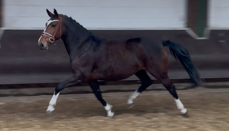A colorful Million Dollar daughter with great movement, in foal for 2025 by the champion stallion, HLP winner and BuCha finalist Cafe au lait, who has been attracting attention for several years with his incredibly successful offspring in advanced level dressage and show jumping! Cafe's "Casimir" (Cafe au lait x Calido x Grannus) was the celebrated top price at the Oldenburg Elite Auction, was a serial winner in medium (M) level dressage at a young age and was a serial winner again in his first advanced (S) level dressage competitions at the age of 7! He is now victorious in international Intermediaire I classes. Kasselmann's mare Cafe's Caletta (Cafe au lait x Calato) has also already won advanced (S) level dressage and international Grand Prix. Cafe's Matts (Cafe au lait x Don Frederico) was the second most expensive dressage horse at the Oldenburg Summer Mixed Sales. Other young horses out of jumping-oriented dams have already placed several times in tests for young dressage horses from novice to medium level and are remarkably strong-moving and clear-headed. There is no question that the Cafe au lait offspring are convincing in show jumping up to advanced level. The licensed Cafe's Champus was Vice World Champion of young horses under Rene Tebbel and is also in stud with us. Also licensed and from our breeding program: Cafe Junior (Cafe au lait x Silvio I), placed internationally in advanced (S*) level show jumping competitions. Cafe's Columbo (Cafe au lait x Belstaff): successful in sport in France. Cafe's Don Rubin (Cafe x Donnerhall): 4yo bronze in the final of the Dobrocker Deister Jumper Championships in his first elementary (L) level show jumper class. Already victorious at novice level for young show jumpers. Cafe au lait himself was a Bundeschampionat finalist under Philipp Weishaupt and has been successful up to advanced (S***) level in show jumping, but also has three spectacular gaits and has been trained to advanced (S) level in dressage. Stationed with Paul Schockemöhle, he has already sired a number of internationally successful show jumpers, including "Royce", victorious in the FEI CSI5* $500,000 Rolex Grand Prix Wellington. Our foals receive daily mineral feed and foal starter, regular EQUISTRO Haemolytan and Ipaligo Foal, worming and a farrier are of course also a matter of course. The dams also receive special mare feed throughout their pregnancy, daily juice feed and linseed oil, as well as hay ad libitum. This ensures that our offspring are always in the best of health! More foals and offspring from our own breeding on request. Some of them can be found under the other advertisements. We produce around 20-25 cafe au lait foals every year. There are also always a few broodmares in foal for sale. Video requests etc. in advance only possible via WhatsApp!