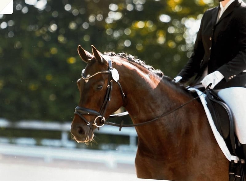Lady haben wir als dreijährige, rohe Stute direkt vom Züchter gekauft. Sie wurde professionell angeritten und anschließend von meiner damals 13-jährigen Tochter weiter ausgebildet. Da wir uns mit ihr viel Zeit gelassen haben und sie hauptsächlich als Freizeitpferd genutzt wurde, ist ihr Ausbildungsstand ihrem Alter entsprechend nicht sehr hoch, dafür ist sie aber sicher und verlässlich. Lady hat über die Jahre regelmäßig Dressur- und Springunterricht bekommen und zeigt sich sowohl im Training als auch auf dem Turnier zuverlässig. Im Jahr 2024 hatte Lady eine Verletzung. Wir haben ihr eine längere Pause und einen Sommer auf der Weide in der Wesermarsch gegeben. Sie ist inzwischen vollständig genesen und wieder ganz normal reitbar. Momentan steht sie bei uns zu Hause und ist voll einsatzfähig. Aufgrund eines Pferdewechsels in der Zwischenzeit wird Lady verkauft. Sie eignet sich ideal als Freizeitpferd, aber auch für Reiter, die Turniere reiten möchten.