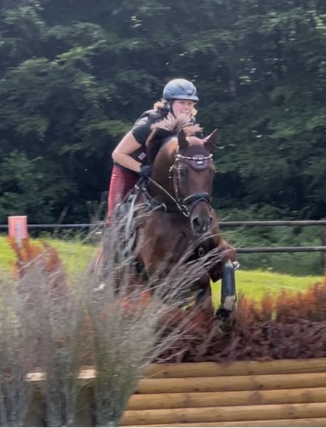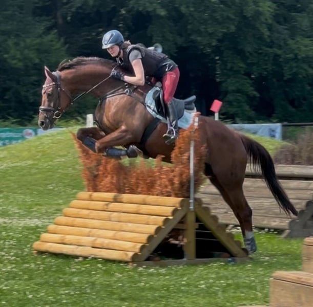 Wir verkaufen eine achtjährige, grundsolide ausgebildete Stute in allen drei Disziplinen der Vielseitigkeit. Aufgrund ihrer Abstammung ist sie auch für Züchter sehr interessant. Sie ist leichtrittig und für eine feine Reiterin geeignet, die Freude an der weiteren Ausbildung hat. Sie zeigt sich stets fleißig und arbeitsbereit und verfügt über drei sehr gute Grundgangarten..Sie geht alleine und in der Gruppe ins Gelände. Die Stute zeigt sich im Umgang sehr selbstbewußt und ein konsequenter Umgang gibt ihr Sicherheit. Wir sehen sie eher als Freizeitpartner als ein Turnierpferd. Sie ist bisher sehr pfedegerecht in einer kleinen Herde mit ganzjähriger Weidehaltung aufgewachsen. Ein Platz, der ihr viel Bewegungsmöglichkeiten bietet wäre ideal. Die für das Pferd eigens angepassten Sättel würden wir gerne mitverkaufen. Kennenlernen und Probereiten ist nach Absprache möglich.