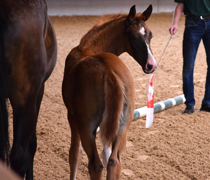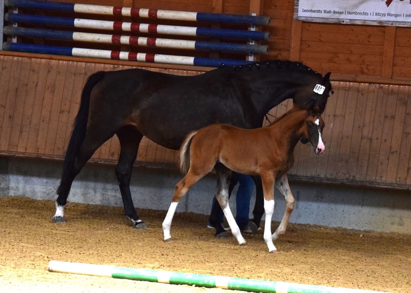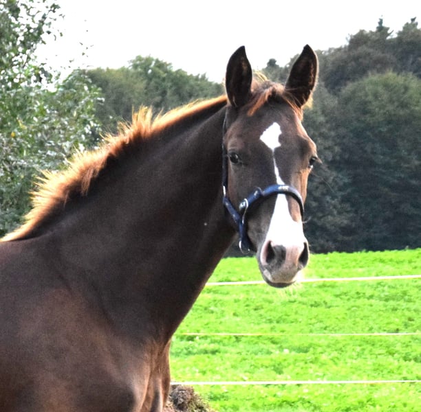 A causa di motivi di allevamento e di un soggiorno all'estero, questa splendida, brave e premiata Verbandstute viene ceduta. Nata nel 2017, di colore baio scuro, circa 176 cm di altezza al garrese, figlia di FAHRENHEIT x STEDINGER. È cresciuta in paddock con molta libertà di movimento ed è stata montata da una cavallerista di livello S in età avanzata. A Oldenburg, è stata riconosciuta come cavalla da riproduzione con attestato VPr. e ha completato con successo la valutazione di selezione (SLP). Da allora è stata montata solo sporadicamente. Ha avuto due puledri (2023 e 2025) da BENICIO, entrambi premiati come puledri di alta qualità, entrambi di colore morello scuro. Non è stata fecondata per il 2026. Linea materna: Due cavalle di élite di fila, seguite da una cavalla di StPrST. Il fratello completo della madre è un stallone premiato di Oldenburg. Linea di sangue: Oldenburger Stamm 74.