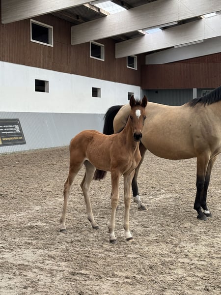 Diese Stute wurde im März geboren und besitzt einen aufgeweckten und starken Charakter. Ihre schönen Gänge werden sie im Sport weit bringen und legen eine guten Grundstein.