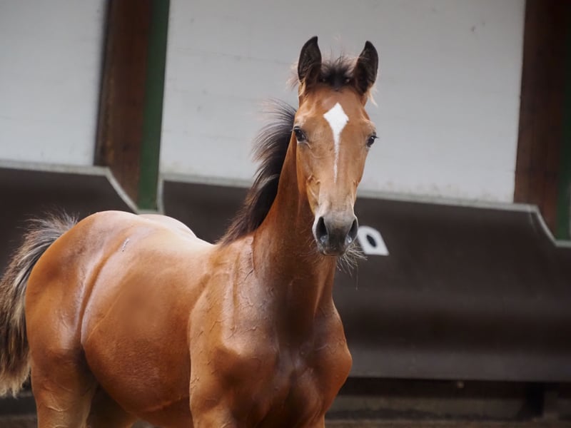 Ebenso vielversprechend wie sein Vollbruder vom letzten Jahr ist dieser schicke, bunte und abstammungsgemäß klar doppelveranlagte Hengstnachwuchs. Sowohl sein Vater Cafe au lait, als auch der Muttervater der Stute "Quattro B" stehen für vielseitige Vererbung und haben eine ganze Reihe von erfolgreichen Dressur- und Springpferden in der schweren Klasse hervorgebracht. Cafe au lait selbst war erfolgreich bis S*** Springen, ist aber auch mit drei spektakulären GGA ausgestattet und dressurmäßig auf S-Niveau ausgebildet worden. Vollbruder zu Cody (Bundeschampion der sechsjährigen Springpferde 2002, ebenfalls Pferdezucht Kuhlmann) und selbst knapp geschlagener Bundeschampionatsfinalist unter Philipp Weishaupt. Stationiert bei Paul Schockemöhle zeugte er schon etliche international erfolgreiche Springpferde, u.a. "Royce" (Cafe au lait x Grandilot), siegreich im FEI CSI5* $500,000 Rolex Grand Prix Wellington. Weiterhin die gekörten Hengste Cafe Junior (Cafe au lait x Silvio I), international erfolgreich in Saudi Arabien, Chester (Cafe au lait x Orlando van de Heffinck) und Cafe's Champus (Cafe au lait x Calido I, Vizeweltmeister der jungen Pferde unter Rene Tebbel). Jüngst gekörte Hengste sind Cafe's Columbo (Cafe au lait x Belstaff), erfolgreich in Frankreich und der bei uns stationierte Cafe's Don Rubi (Cafe au lait x Donnerhall). Cafe's Casimir" (Cafe au lait x Calido x Grannus) wurde gefeierte Preisspitze der Oldenburger Eliteauktion, war bereits in jungen Jahren Seriensieger in Dressurpferde L und M, 7jährig in seinen ersten S- Dressuren wieder Seriensieger, inzwischen siegreich S** und CDI3* FEI Intermediaire I. Cafe's Caletta (Cafe au lait x Calato) aktuell siegreich Dressur S** und S*** unter Bianca Kasselmann. Cafe's Matts (Cafe au lait x Don Frederico) wurde zweitteuerstes Dressurpferd der Oldenburger Summer Mixed Sales. Weitere Jungpferde aus springbetonten Mutterstuten sind bereits mehrfach in Dressurpferdeprüfungen A bis M platziert und sind bemerkenswert bewegungsstark und kopfklar. Dementsprechend stehen auch diesem tollen Hengstfohlen alle Wege offen! Der ältere Vollbruder wird grade angeritten und zeigt schon jetzt wie erfolgreich diese Anpaarung gewesen ist. Unsere Fohlen bekommen täglich Mineralfutter und Fohlenstarter, regelmäßig EQUISTRO Haemolytan und Ipaligo Foal, Wurmkuren und Schmied sind natürlich ebenfalls selbstverständlich. Auch die Muttertiere bekommen die ganze Trächtigkeit hindurch spezielles Stutenfutter, täglich Saftfutter und Leinöl, sowie Heu ad libitum. So ist unsere Nachzucht stets im besten Gesundheitszustand! Videoanfragen etc. vorab ausschließlich über WhatsApp möglich. Weitere Fohlen und Nachwuchspferde aus eigener Zucht auf Anfrage, ein Teil ist unter den anderen Anzeigen zu finden.