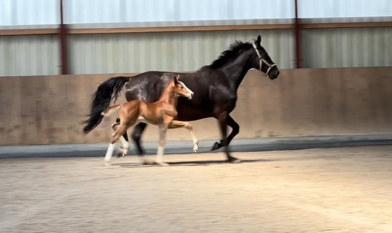 Directamente del criador; ¡¡¡Hermoso potro correcto con chaqueta colorida, mucho cuello y mucho movimiento por el mejor semental Cellaho's Benicio !!! Siempre muestra mucha expresion, buen paso, trote vivo con bastante mecanica y un galope cuesta arriba fantastico. Una oferta para todo criador de sementales o jinete de doma. Como todos los hijos de su madre, tiene una cabeza absolutamente clara con una gran tendencia a subir y, como todos sus hijos, tiene una facilidad para montar por encima de la media. Su hermano se vendió como semental. La abuela materna (Stedinger x Rohdimant) fue una ganadora en serie en deporte y colocada hasta nivel medio así como 3/4 hermana salida de la misma madre como SAM OLD que ya fue ganadora de Gran Premio a la edad de 7 años. No hace falta decir nada más sobre el padre Cellaho's Benicio. El campeón de Alemania y semental de Gran Premio por Belissimo está estacionado en la estación de sementales Beckmann.