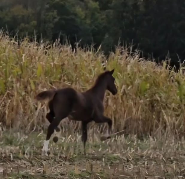 ¡Hermoso tipo semental ! Sobresalientes movimientos sueltos, gran galope cuesta arriba.