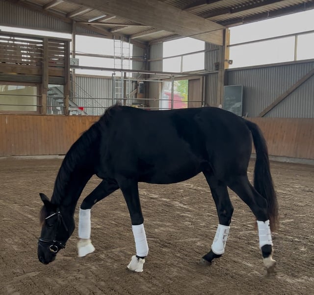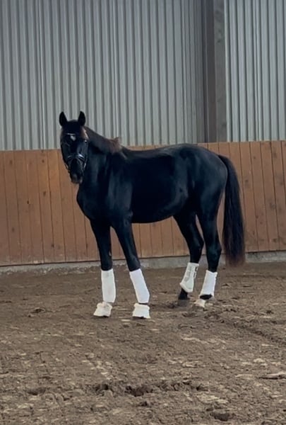 For sale: Young Oldenburg stallion – perfect for dressage! This elegant black colt was born in 2023 and impresses with his promising pedigree and noble appearance. Standing at 16.1 hh, he is already an appealing prospect for the dressage sport. The stallion exhibits a balanced temperament and a solid basic training. His elegant appearance and expressive movement suggest a bright future in dressage. Djago comes directly from the breeder, where he was raised with love and care. He is healthy and currently still barefoot. His three-year-old full brother shows talent and is very well-behaved under saddle. Rideability and character bring great joy. If interested, I am happy to provide more information and arrange a viewing. Please feel free to contact me! Other horses (show jumping/dressage) available upon request. Please contact me exclusively via WhatsApp: 0176 27767762 Thank you!