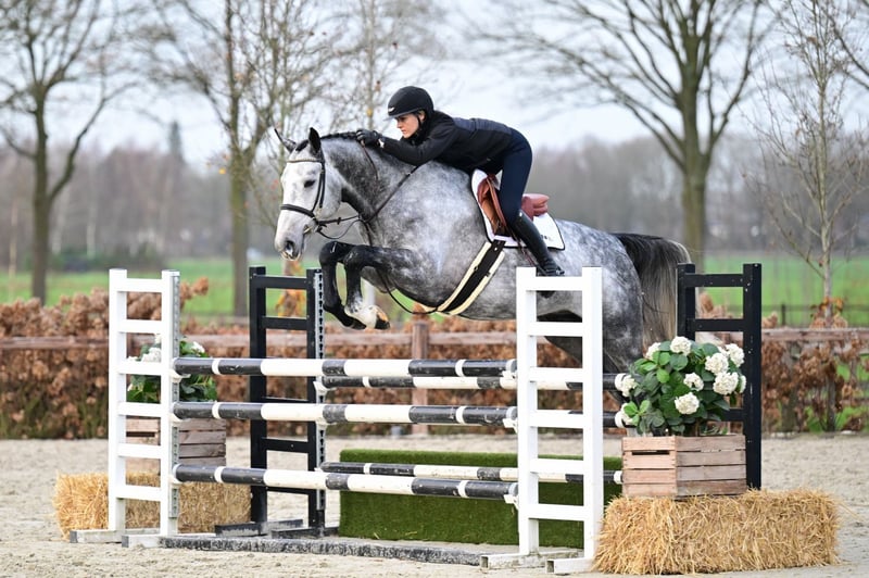 This five-year-old modern stallion possesses everything one expects from a classic, contemporary sport horse. On the sire’s side we find the exceptional Emerald van ’t Ruytershof, while the dam line is strengthened by Vingino, also a 1.60m Grand Prix stallion under Abdel Said. Further influential names in the pedigree include Sam R, Calvino, and Cordano Z. It is no coincidence that this family has already produced multiple horses competing at 1.50–1.60m level. Some of the top performers from the same line include: Chica B Z (1.60m) – Arturo Parada Garruby P (1.55m) – Werner Muff Bandoleiro Darco do Quiriri (1.60m) – Luiz Felipe Pimenta In addition, this lineage has produced many other successful sport horses. Empyrean moves with great correctness and lightness. In canter he shows natural balance and changes leads effortlessly, making him very easy to ride around a course. Over the jumps, his strong technique stands out immediately: he brings his knees up beautifully and finishes the jump in a harmonious, well-balanced manner. His character is an added asset. Empyrean has an exceptionally balanced temperament and is a very pleasant horse to handle in everyday work. He combines expression, scope and attitude — truly a hunter with top attitude.
