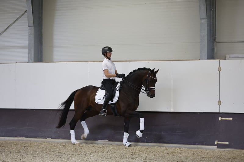 Furore Fantastico – een hengst die zijn naam waarmaakt. De in 2020 in Oldenburg goedgekeurde uitzonderlijke hengst heeft alle prestaties met droomcijfers ver boven de 8 behaald. In 2024 overtuigde hij op Kronberghof als winnaar van de kwalificatie voor het Bundeschampionat en sindsdien heeft hij overwinning na overwinning behaald – van M- tot S-dressuur. Dit jaar heeft hij al een Jungpferde-S gewonnen en toont daarmee indrukwekkend zijn potentieel voor het grote podium. Zijn opleiding is altijd leeftijdsgebonden en eerlijk geweest, wat zich uit in zijn rijdbaarheid en zijn oprechte, prestatiegerichte karakter. Furore Fantastico valt niet alleen op door zijn uitstekende gangvermogen en expressie, maar ook door zijn charismatische uitstraling, die hem bij elke wedstrijd de sympathie van de jury en het publiek garandeert. Hij is een paard dat harten wint – zowel in de wedstrijdring als in de stal. In de dagelijkse training toont hij zich uiterst gemotiveerd, betrouwbaar en eenvoudig in de omgang. Hij is hoefsmid- en transportvriendelijk, daarbij zenuwsterk en altijd bereid om te werken, en is een partner die elke dag het beste van zichzelf wil geven. Een hengst die alles verenigt: type, talent, karakter – en dat bepaalde iets dat een winnaar maakt. Actuele röntgenfoto's zijn beschikbaar en uiteraard zonder bevindingen. Furore Fantastico bevindt zich in de buurt van Wenen en kan op elk moment worden bezichtigd. Video's worden uitsluitend na een telefonisch kennismakingsgesprek verzonden.