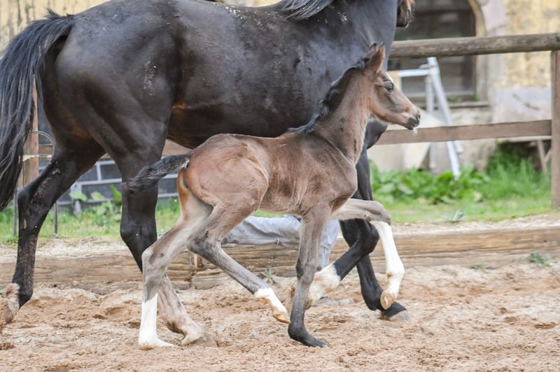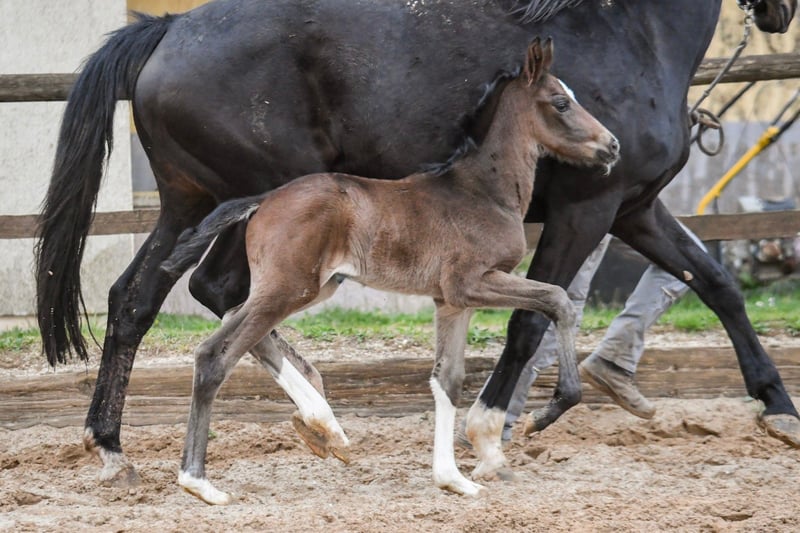 Fohlenankündigung: Wir bekommen im März ein Fohlen v. Va Bene aus der Chanel v. Christ. Sie stellte in der Anpaarung mit Viva Gold schon den 2. Spitzenpreis bei der Onlinefohlenauktion in Vechta. Hengst war zur Körung in Vechta zugelassen, vertrat sich dann aber an der Longe. Die beiden anderen Geschwister von Bon Esprit und Bonds (ebenfalls mit Auktionszulassung) waren ebenfalls sehr bewegungsstark.
